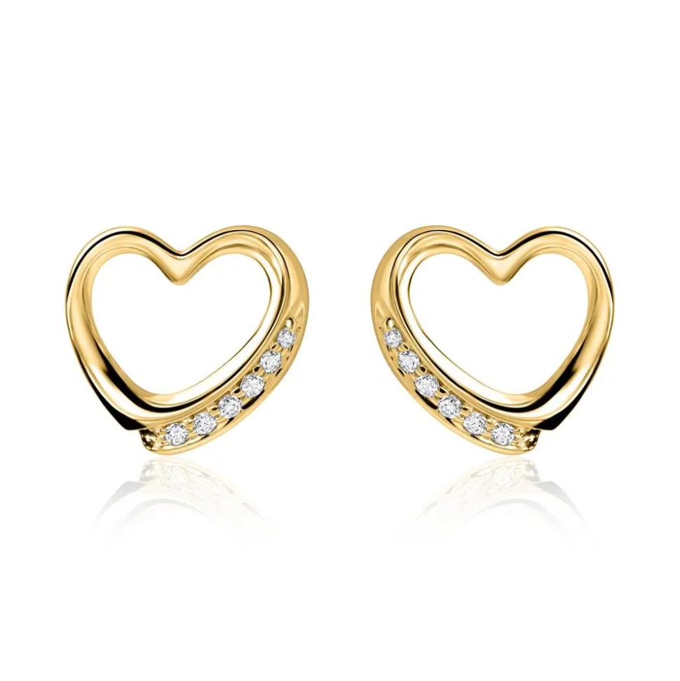 Eine romantische und edle Geschenkidee – das sind diese Damen-Ohrstecker. Sie bestehen aus 585er Gold, besitzen eine Herzform und werden von 12 brillantgeschliffenen Diamanten (ca. 0,06 ct.) geziert. Die Diamanten sind konfliktfrei und besitzen die Farbe TW und Reinheit SI.