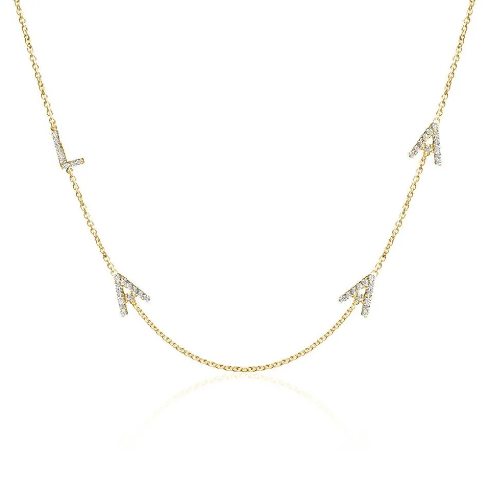 Diese exklusive Kette eignet sich perfekt für persönliche Statements! Sie besteht aus 585er Gold und zwischen die Ankerkettenglieder können vier Buchstaben, Symbole oder Zahlen nach Wahl eingearbeitet werden, die mit Diamanten besetzt sind. Je nach Buchstabe variiert die Anzahl der Diamanten (pro Buchstabe) zwischen 9 bis 17 (ca. 0,05 ct. bis 0,11 ct.). Die Steine besitzen die Farbe TW und Reinheit SI. Bei uns wird Qualität groß geschrieben. Daher prüfen wir jedes einzelne Schmuckstück, bevor es unser Haus verlässt. Da uns auch ethische Aspekte am Herzen liegen, verarbeiten wir ausschließlich Diamanten aus konfliktfreien Quellen. Für die Position der Buchstaben bitte das zweite Bild beachten. Die Position der Öse und die Größe der Elemente kann variieren. Die Größe liegt zwischen ca. 4-7mm je nach Element.