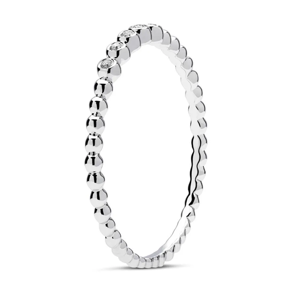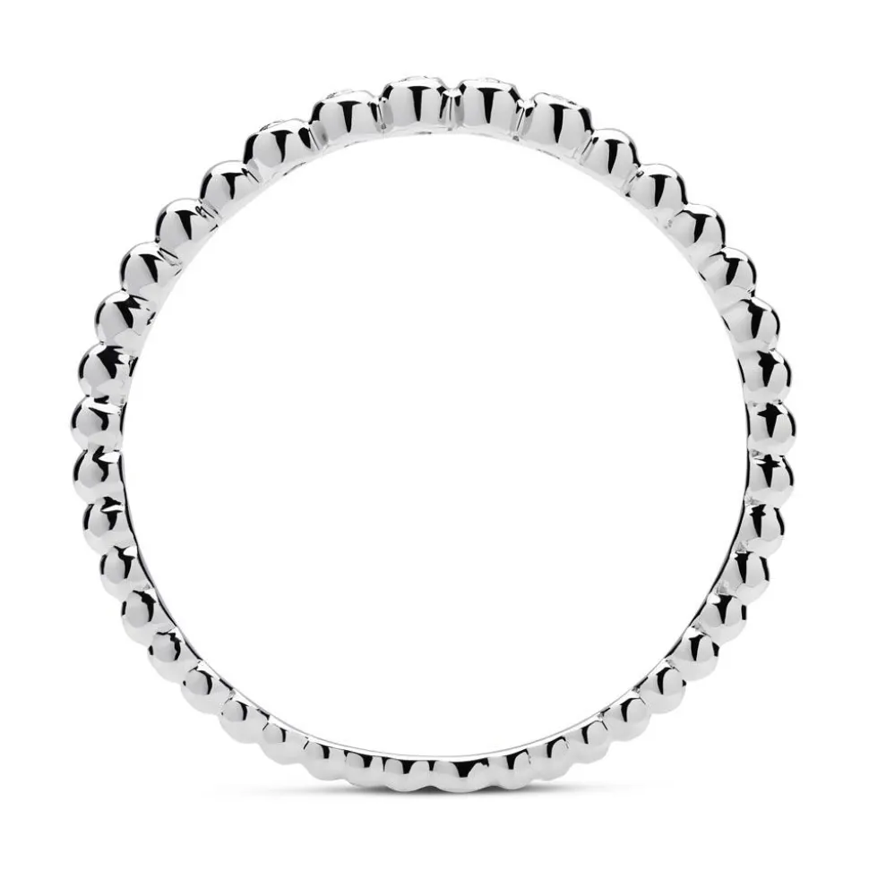 Memoire-Ringe sind ideal als Geschenk zu einem besonderen Anlass und einem bedeutungsvollen Jubiläum geeignet. Und dieser Ring besticht nicht nur durch sein symbolträchtiges Design, sondern auch durch die Hochwertigkeit der verwendeten Materialien. Das moderne Kugel-Design der Ringschiene aus rhodiniertem 750er Weißgold wird durch das Funkeln der 5 Diamanten (ca. 0,03 ct.; Farbe: G; Reinheit: SI) in Zargenfassung perfekt ergänzt. Durch sein zurückhaltendes Design kann der filigrane Ring solo getragen werden, lässt sich aber auch perfekt mit anderen Ringen kombinieren. Wir legen bei unserem Diamantschmuck nicht nur Wert auf eine exzellente Qualität, die bei jedem einzelnen Schmuckstück geprüft wird, sondern auch auf ethische Aspekte. Deshalb stammen unsere Diamanten ausschließlich aus konfliktfreien Quellen.