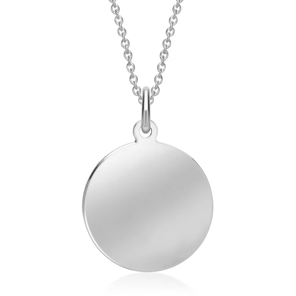 Dieser Kreisanhänger ist ein ansprechender Blickfang! Er besteht aus 333er Weißgold und kann auf beiden Seiten mit einer persönlichen Wunschgravur versehen werden. Durch die hochwertige Rhodinierung ist der Anhänger anlaufgeschützt.