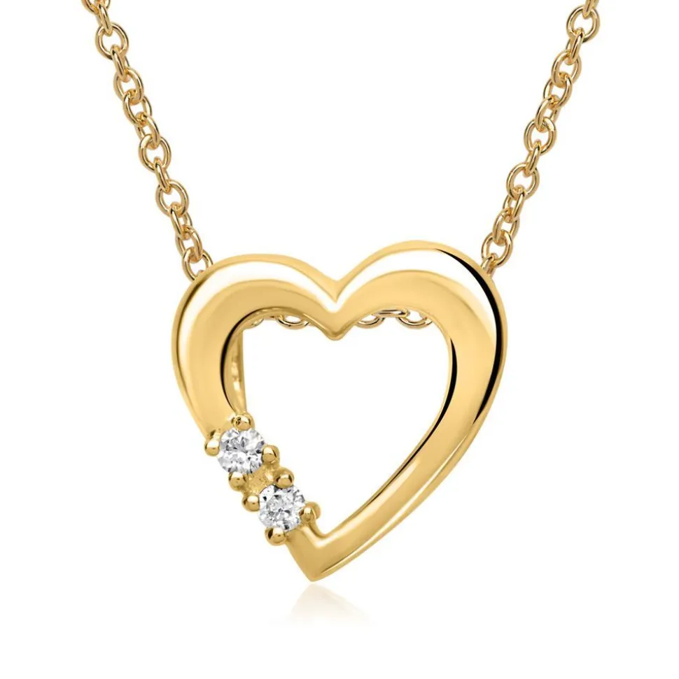 Herzförmiger Anhänger aus 585er Gelbgold, geziert von zwei echten Diamanten