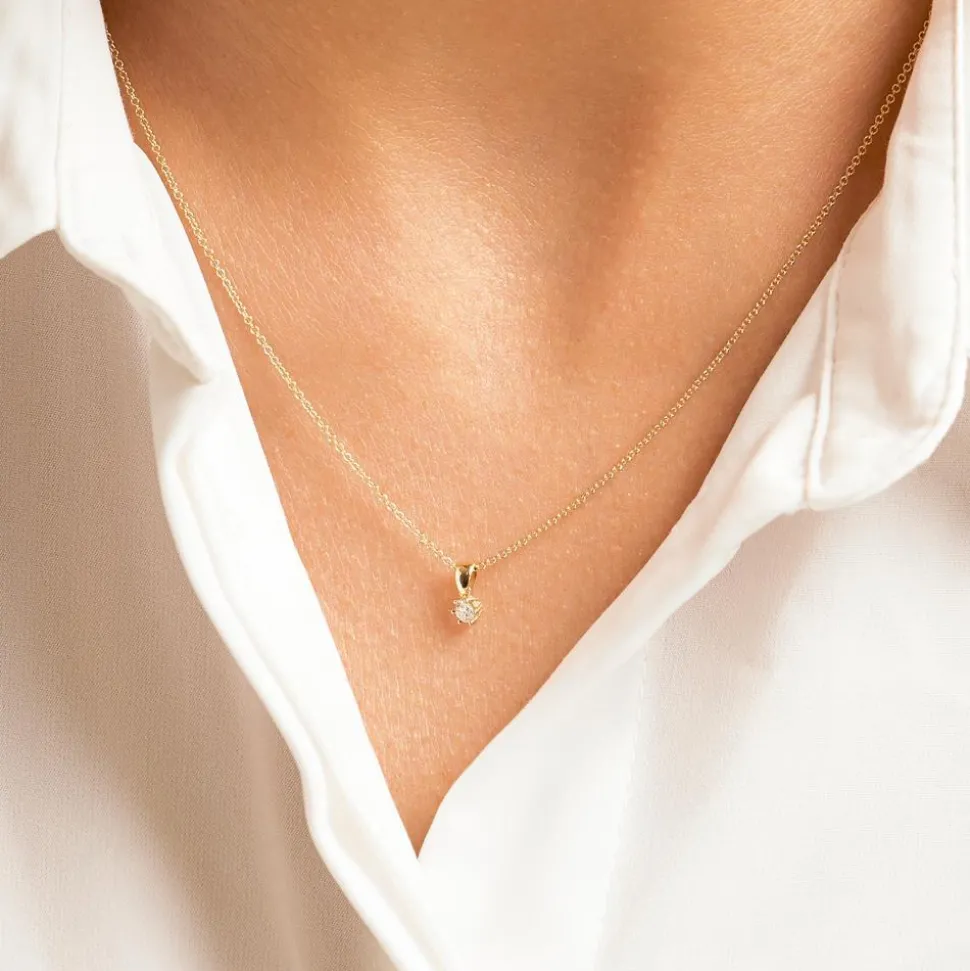 Dieser Kettenanhänger ist ein ansprechender Blickfang! Er ist aus 14-karätigem Gold gefertigt und wird von einem krappengefassten Diamant (ca. 0,10 ct., Farbe: TW, Reinheit: SI) im Brillantschliff geziert. Wir legen bei unserem Diamantschmuck nicht nur Wert auf eine exzellente Qualität, sondern auch auf ethische Aspekte. Deshalb stammen unsere Diamanten ausschließlich aus konfliktfreien Quellen.
