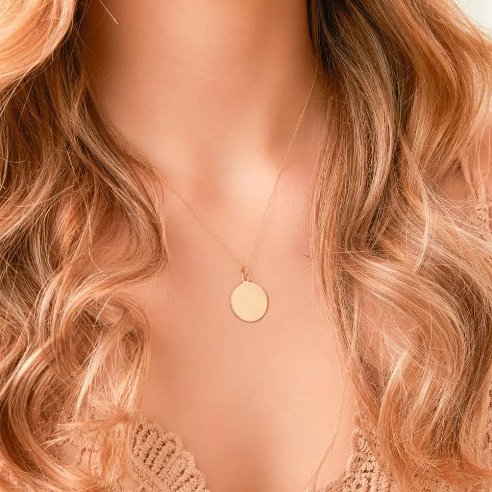 Ein formschöner Klassiker – das ist dieser Anhänger für Ketten aus 14-karätigem Gold. Durch seine ansprechende Größe bietet der Kreisanhänger auf beiden Seiten genügend Platz, um ihn mit einer persönlichen Botschaft gravieren zu lassen – unser hausinterner Gravurservice macht dies möglich.