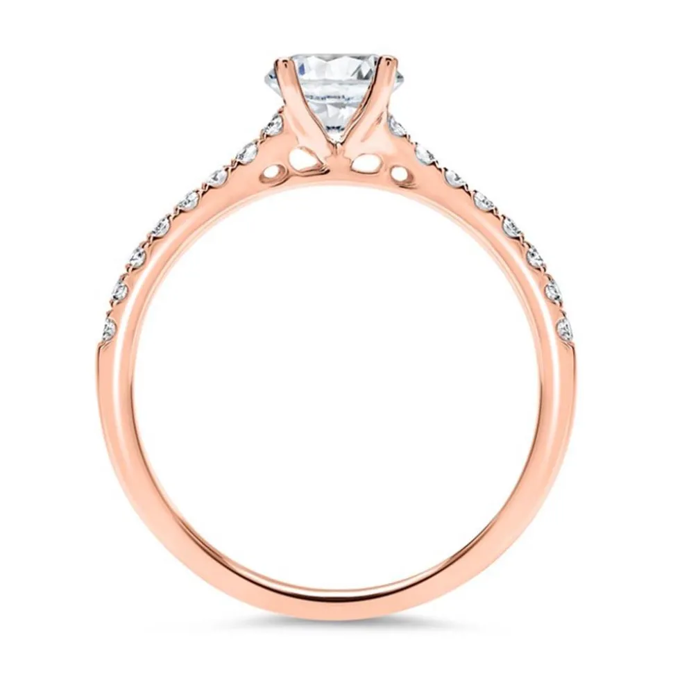 Sie wollen Ihrer Liebsten demnächst einen Heiratsantrag machen? Dann könnte das der perfekte Verlobungsring sein! Die Hälfte der Ringschiene aus hochglanzpoliertem 585er Roségold ist mit insgesamt 16 Brillanten (ca. 0,21 ct.; Farbe G, Reinheit: SI) in Pavéfassung besetzt. Wenn Sie möchten, können Sie von uns einen Diamanten (ca. 0,50 ct.) im Brillantschliff in die Krappen fassen lassen. Zudem besteht die Möglichkeit die Innenseite des Ringes mit Ihrem Wunschtext gravieren zu lassen. Bei uns wird Qualität groß geschrieben. Daher prüfen wir jeden einzelnen Ring, bevor er unser Haus verlässt. Da uns auch ethische Aspekte am Herzen liegen, verarbeiten wir ausschließlich Diamanten aus konfliktfreien Quellen. Der Hauptdiamant ist von dem renommierten Gemological Institute of America (GIA) zertifiziert. Dieses Zertifikat gibt Auskunft über die Herkunft, Echtheit und alle weiteren wertbestimmenden Merkmale.