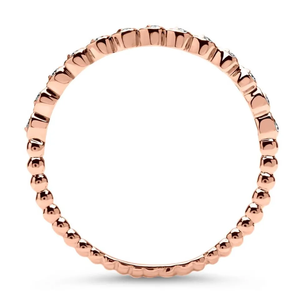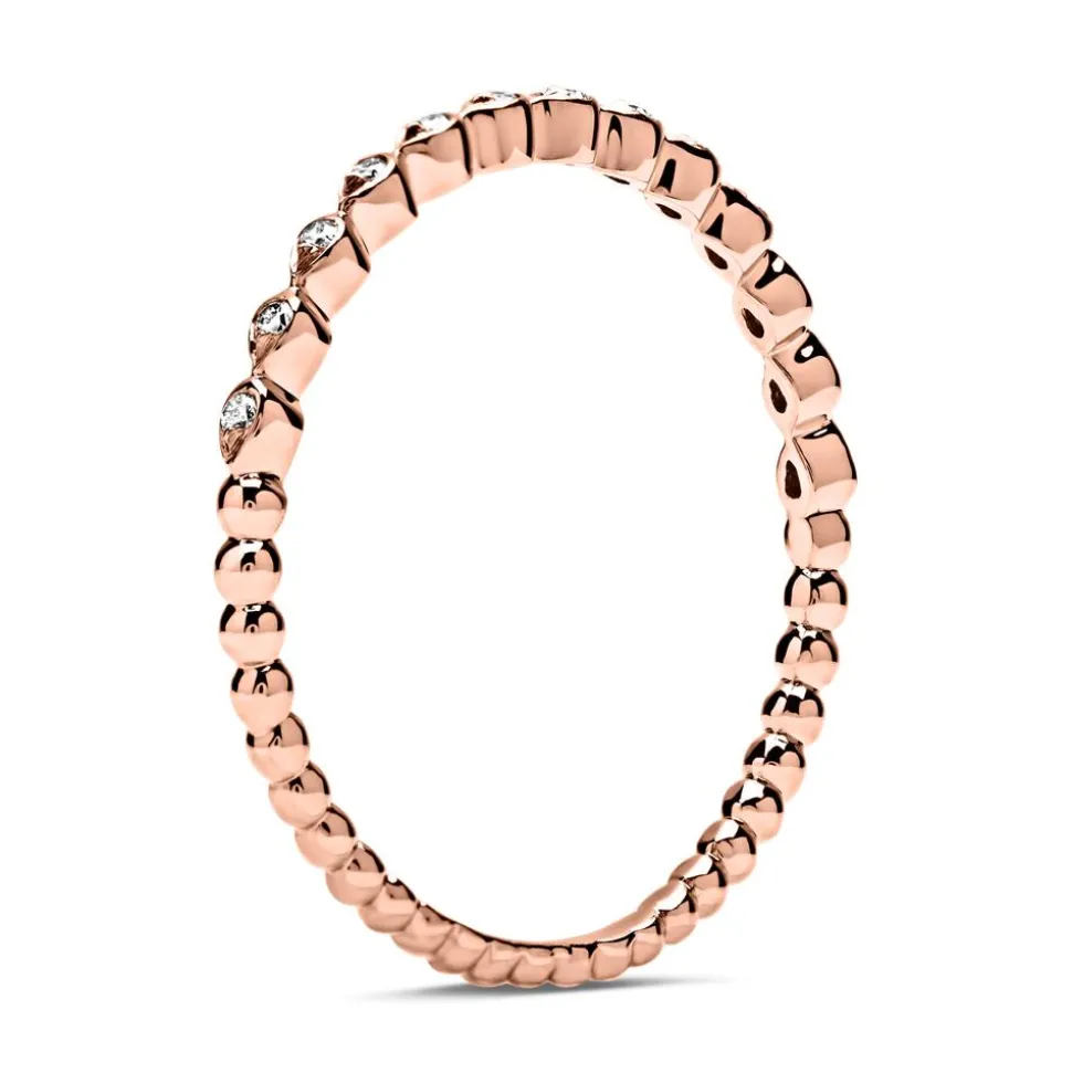 Dieser Diamantring steht für pures Understatement! Er besteht aus 750er Roségold und ist mit 13 Diamanten (ca. 0,07 ct., Farbe: G/TW; Reinheit: SI) besetzt. Die verarbeiteten Diamanten sind selbstverständlich konfliktfrei.