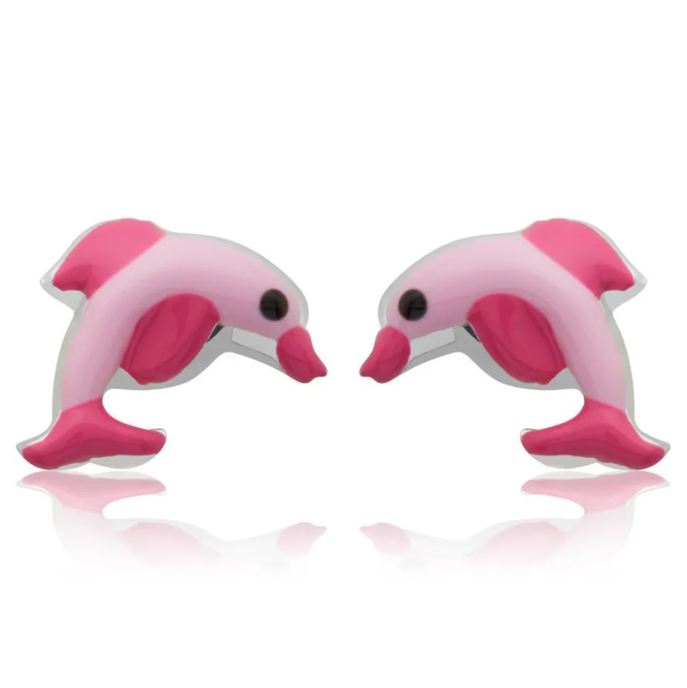 Pinke Kinderohrstecker mit Delfinmotiv. Die Ohrstecker sind aus echtem 925 Sterling Silber.