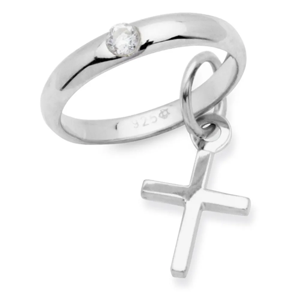 Ein stilvolles Geschenk zur Taufe – das ist diese filigrane Kette aus Sterlingsilber. Die Ankerkette trägt einen Kreuzanhänger, an dem ein Taufring hängt. Geziert wird der Ring zudem noch von einem funkelnden Zirkoniastein.