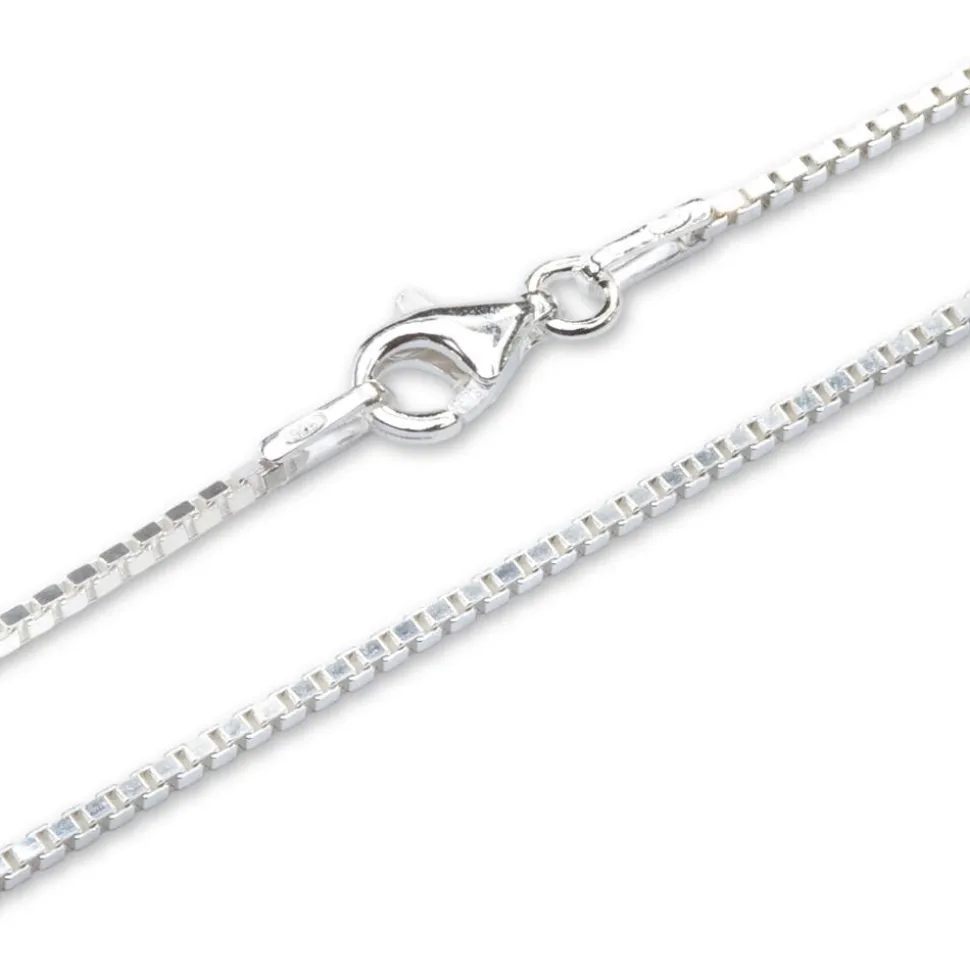 Massive Venezianerkette in 1,2mm Breite. Die Venezianerkette ist aus echtem 925 Sterling Silber und entsprechend gestempelt. Die Kette verfügt über einen praktischen Karabinerverschluss sowie hochwertige Endeinfassungen. Die Oberfläche der Venezianerkette ist hochglanzpoliert.