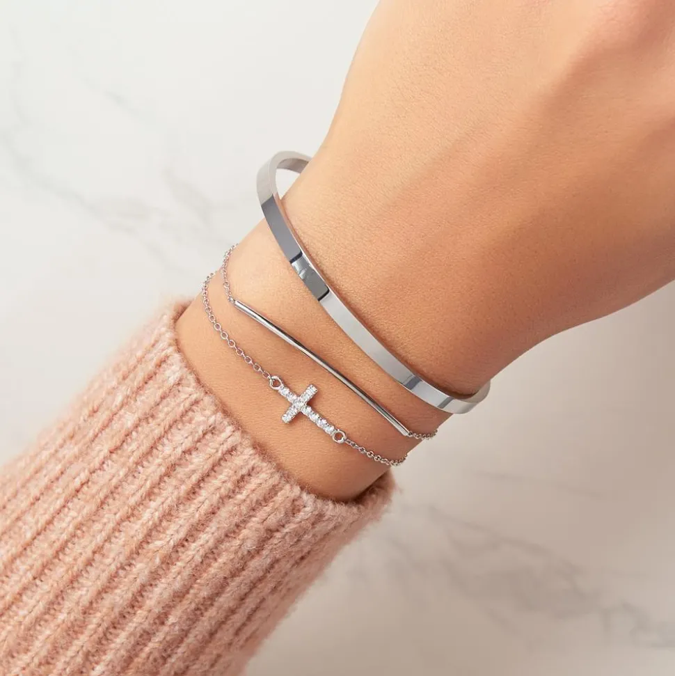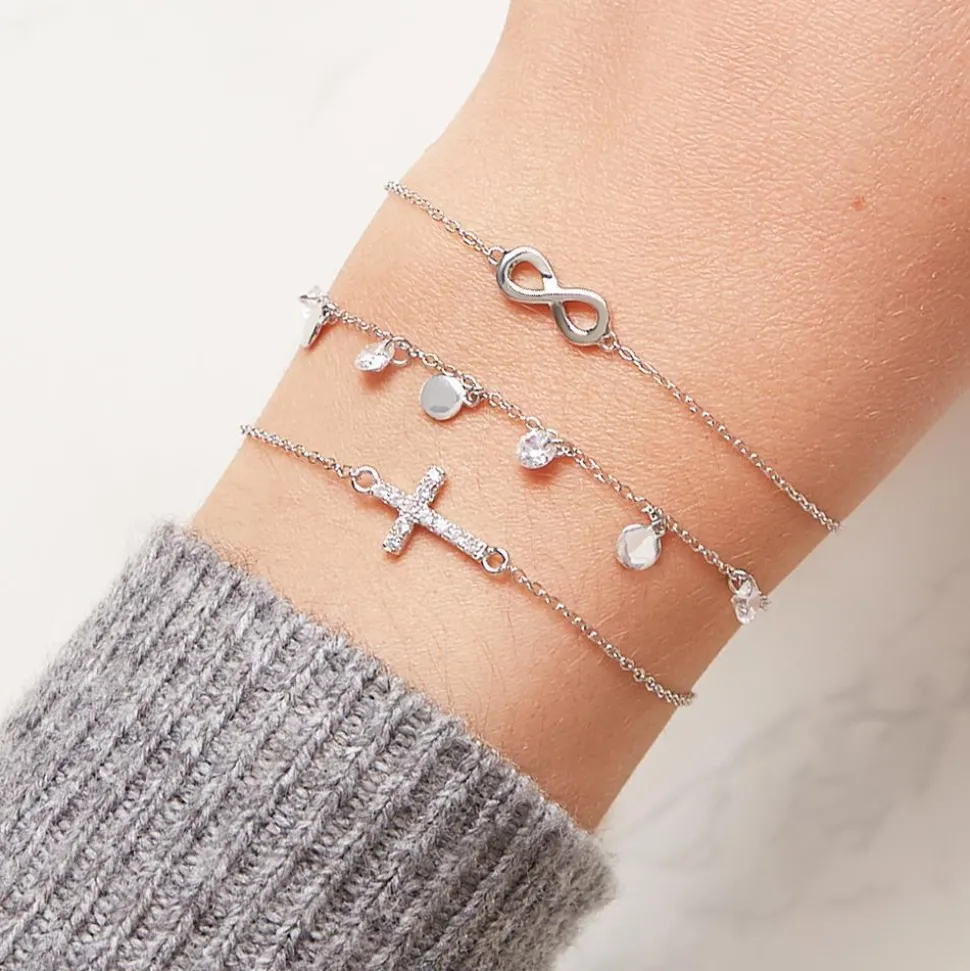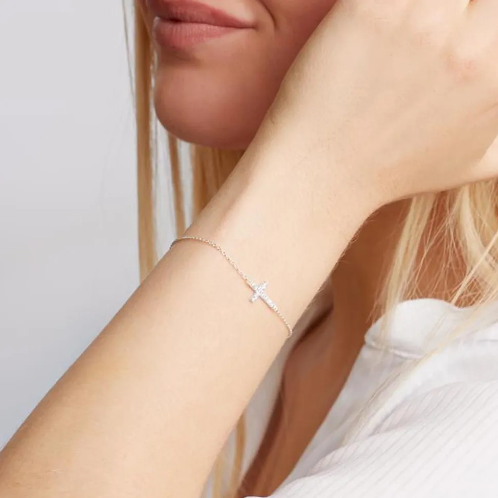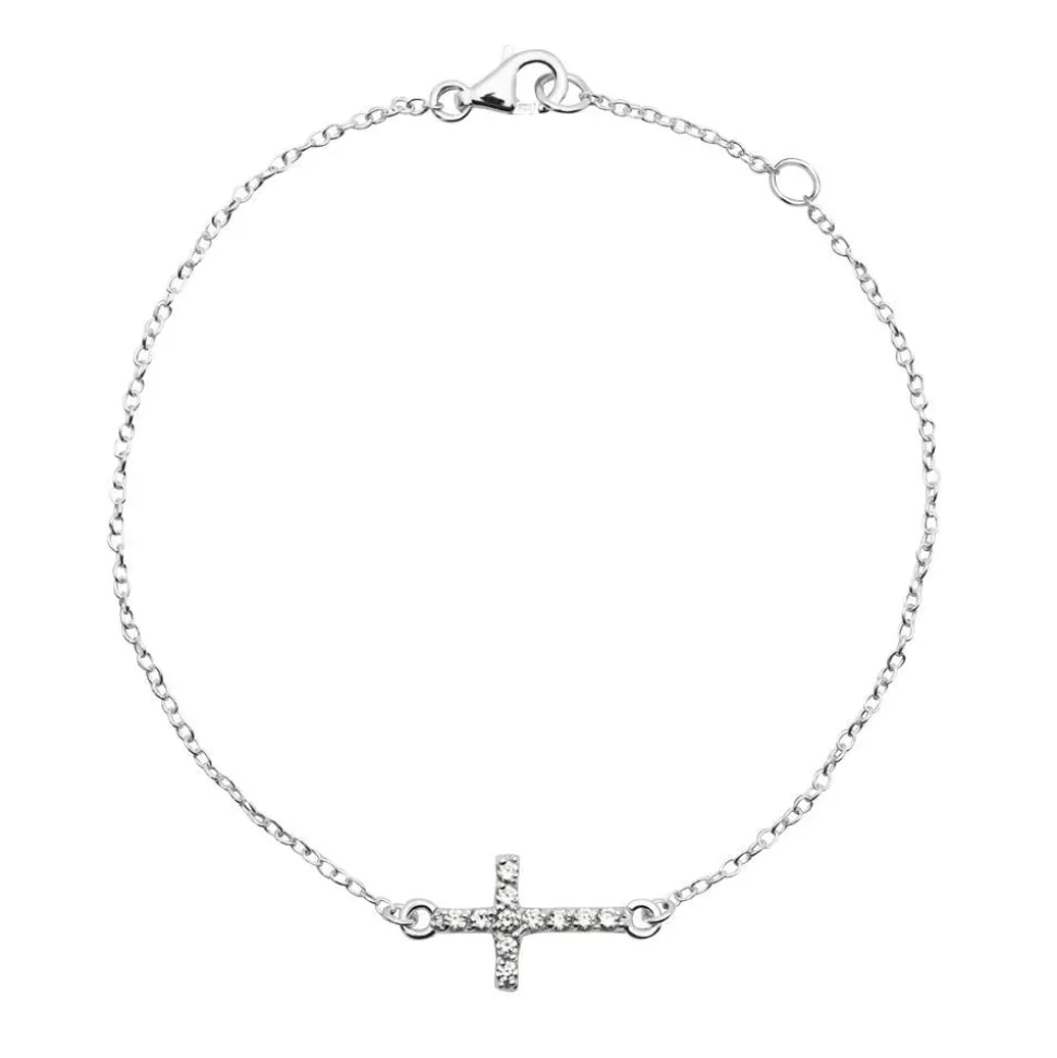 Kreuze haben für viele Menschen einen hohen Symbolcharakter. Zudem eignen sie sich wunderbar als Geschenk zu besonderen Anlässen. Auch dieses Armband ist daher perfekt dazu geeignet sich selbst oder einem geliebten Menschen eine Freude zu machen. Das fein gewirkte Armband aus Sterlingsilber hat ein integriertes Kreuz, welches mit weißen Zirkoniasteinen besetzt wurde. Der Silberglanz und das Strahlen der Schmucksteine werden sicher auch Sie begeistern. Das Armband wird mit einem klassischen Karabiner verschlossen. Die Tragelänge kann, durch das integrierte Verlängerungskettchen, angepasst werden.