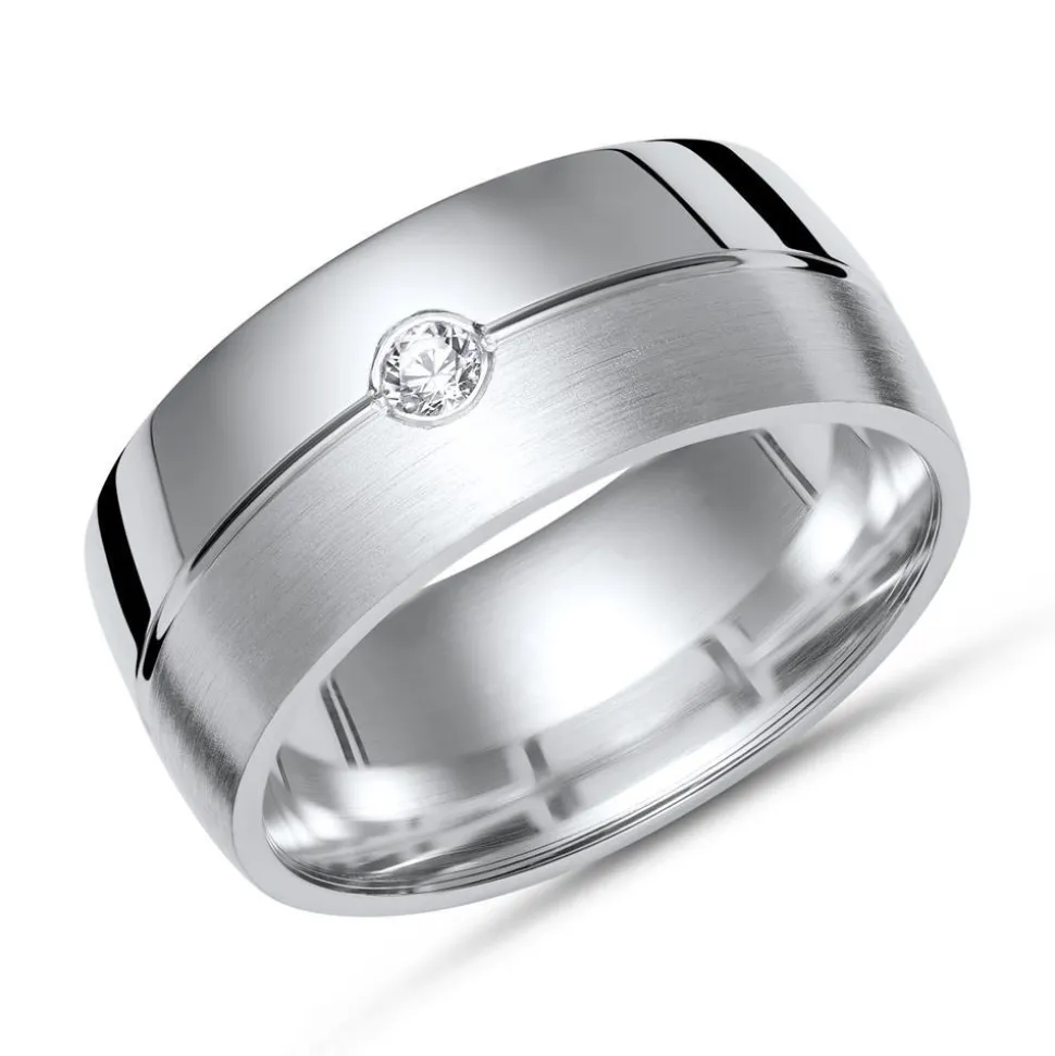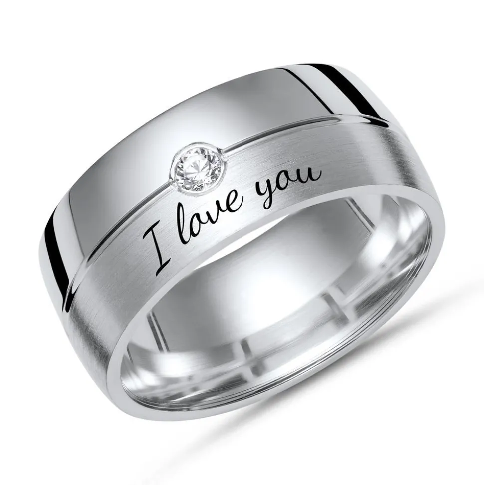 Markanter Ring aus teilmattiertem Sterlingsilber mit Zirkonia und inklusive Gravur