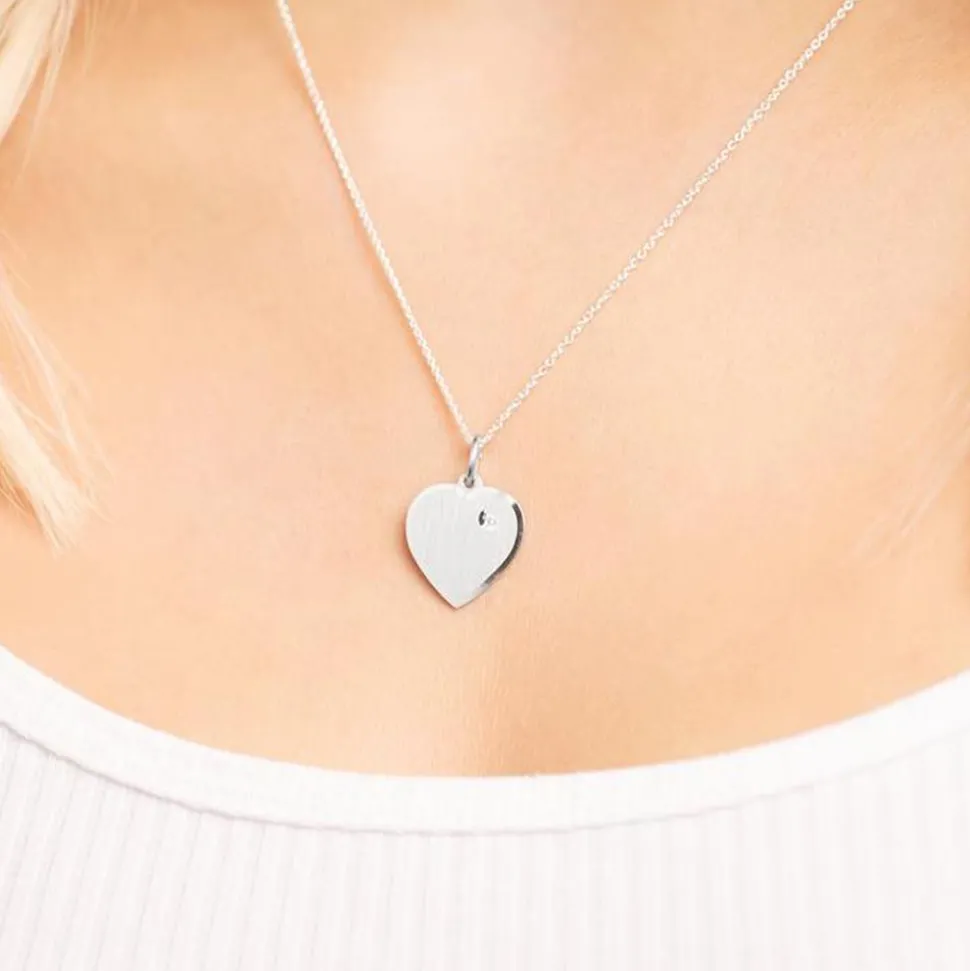 Hochwertiger Herzanhänger aus 925er Silber mit Steinbesatz. Der Anhänger besitzt eine mattierte Oberfläche mit poliertem Rand. Dank der Rhodinierung ist der Silberanhänger anlaufgeschützt. Sie können den Anhänger wahlweise mit einer Diamantgravur (siehe Bild 2) oder Lasergravur (siehe Bild 3) versehen lassen. Zudem können Sie zwischen einer horizontalen und vertikalen Gravurrichtung wählen.