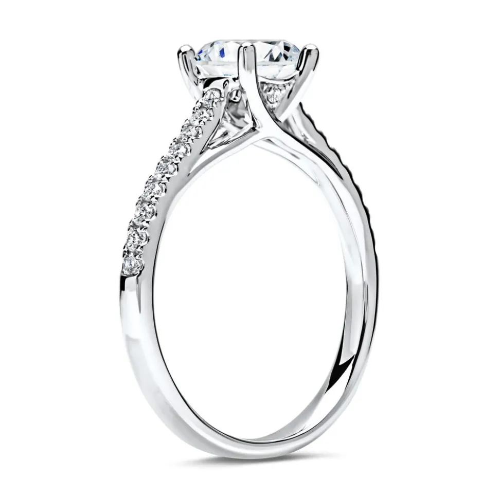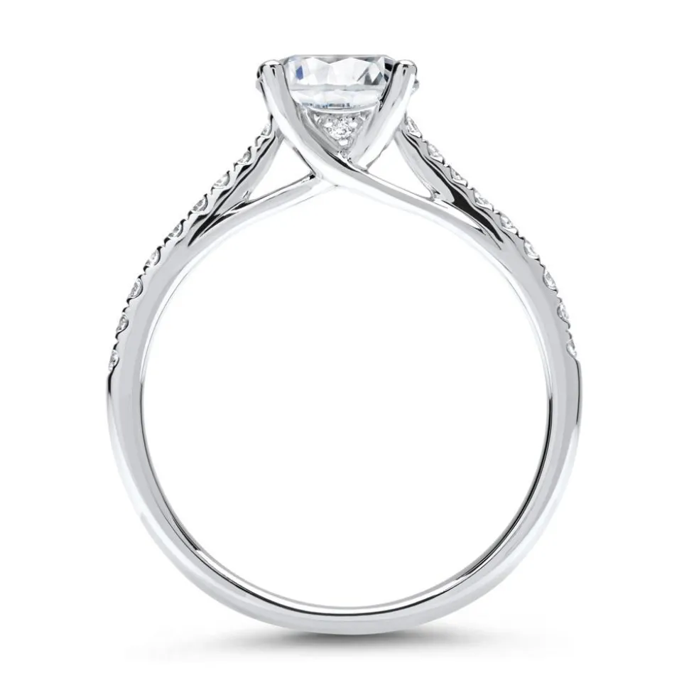 Raffiniertes Design, echte Diamanten und hochglanzpoliertes 950er Platin – feinste Juwelierskunst in ihrer schönsten Form. Die Ringschiene ist bis zur Hälfte mit brillantgeschliffenen Diamanten in Pavéfassung besetzt, die an der Krappenfassung des großen Brillantens (ca. 1,00 ct.) enden. Unter diesem befinden sich noch zwei weitere Diamanten (insgesamt 20; ca. 0,21 ct.; Farbe: Top Wesselton, Reinheit: small inclusions). Durch unseren Gravurservice kann auf Wunsch die Innenseite des Ringes mit einer persönlichen Widmung, einem Namen oder einem Datum versehen werden. Die schmale Ringschiene sorgt für ein angenehmes Tragegefühl und durch die hochwertige Rhodinierung ist der Ring anlaufgeschützt. Für uns ist es selbstverständlich, dass unsere Diamanten ausschließlich aus konfliktfreien Quellen stammen. Der Hauptdiamant ist von dem renommierten Gemological Institute of America (GIA) zertifiziert. Dieses Zertifikat gibt Auskunft über die Herkunft, Echtheit und alle weiteren wertbestimmenden Merkmale.