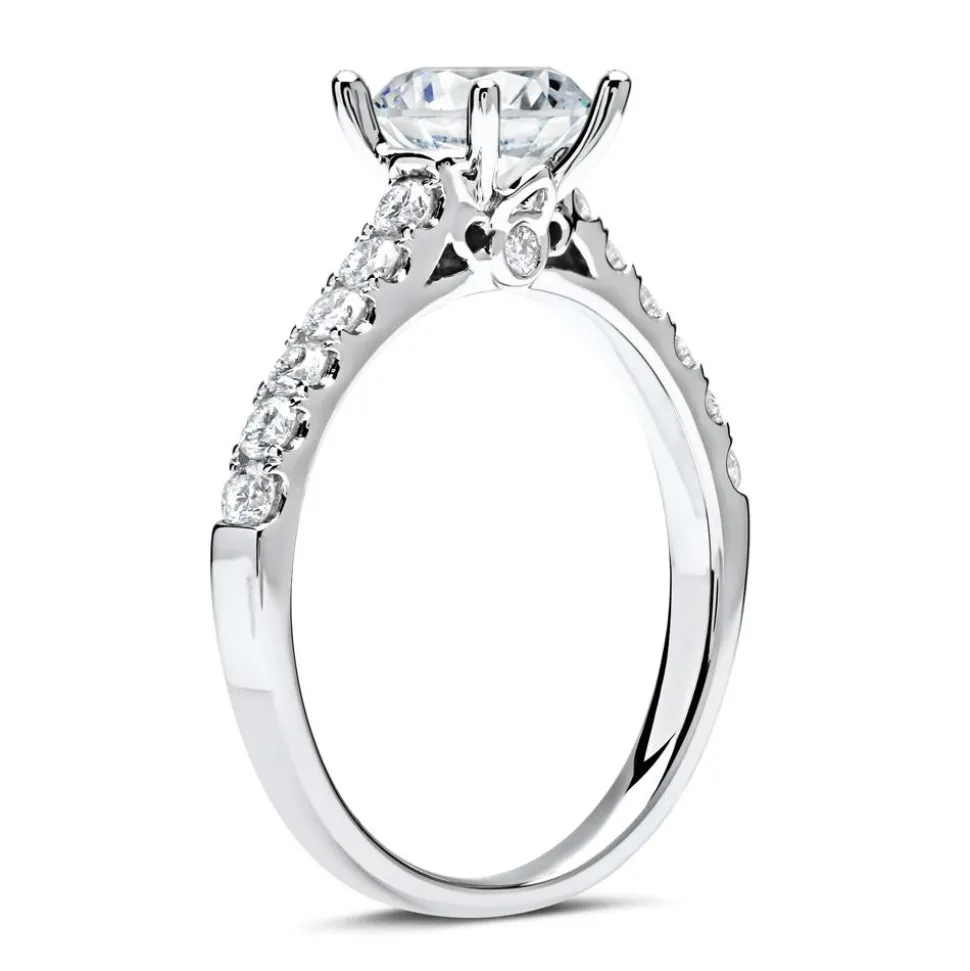 Dieser Ring aus rhodiniertem 950er Platin wird jeden Liebhaber von exklusivem Schmuck begeistern! Die 14 brillantgeschliffenen Diamanten (ca. 0,40 ct.; Farbe: Top Wesselton, Reinheit: small inclusions) in Pavéfassung zieren sowohl einen Teil der filigranen Ringschiene als auch das Profil des Ringkopfes und werden den Hauptstein (ca. 1,00 ct.) im Brillantschliff perfekt in Szene setzen. Der Hauptdiamant ist von dem renommierten Gemological Institute of America (GIA) zertifiziert. Dieses Zertifikat gibt Auskunft über die Herkunft, Echtheit und alle weiteren wertbestimmenden Merkmale. Neben höchsten Qualitätsstandards, die wir bei jedem einzelnen Schmuckstück von Hand prüfen, achten wir auch auf ethische Aspekte. Deshalb stammen unsere Diamanten ausschließlich aus konfliktfreien Quellen. Durch unseren Gravurservice kann auf Wunsch die Innenseite des Ringes mit einer persönlichen Widmung, einem Namen oder einem Datum versehen werden.