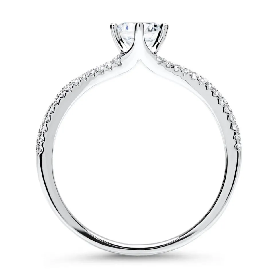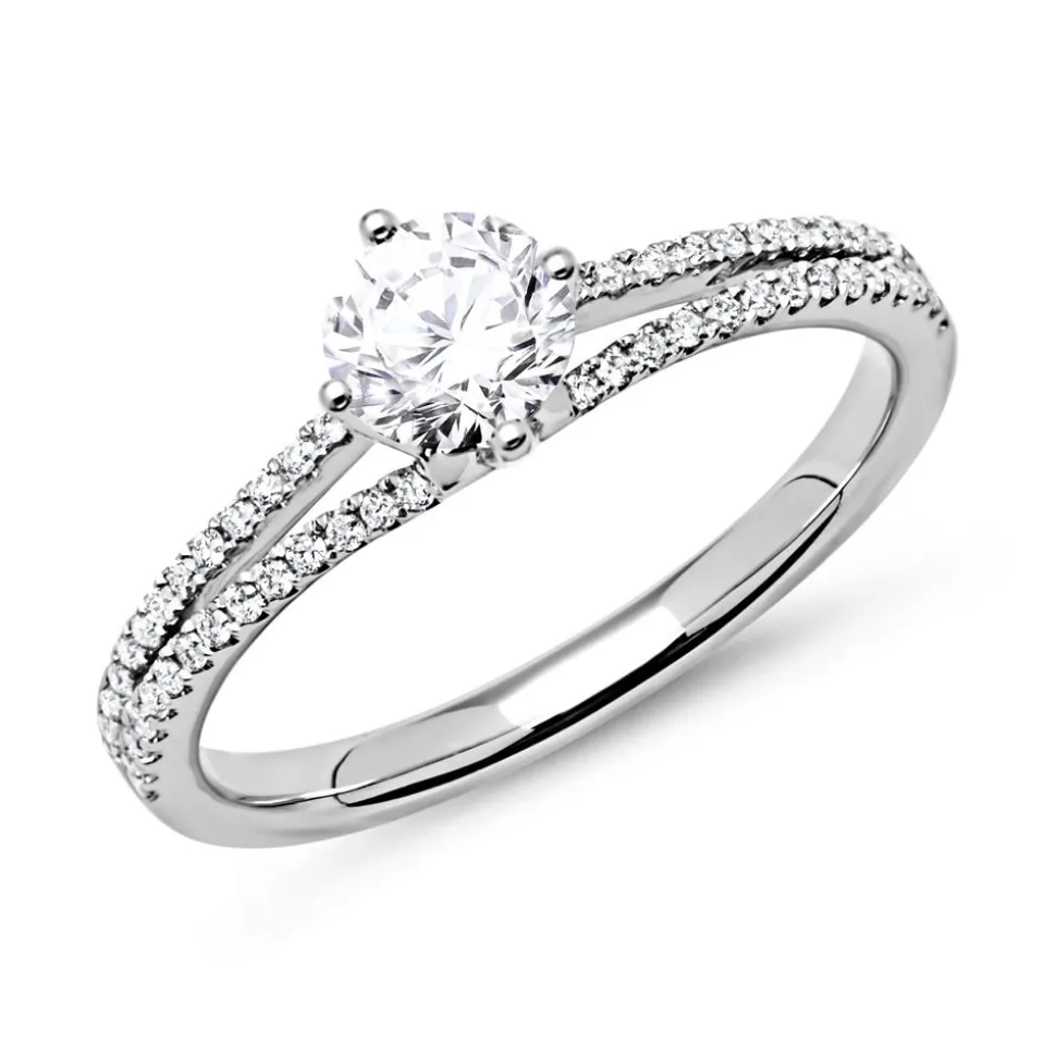 Die zweigeteilte Ringschiene ist bis zur Hälfte mit 56 brillantgeschliffenen Diamanten (ca. 0,16 ct.) in Micro-Pavéfassung besetzt. Die Farbe der Steine ist klassifiziert als Feines Weiß (Top Wesselton) und die Reinheit der Steine fällt in die Kategorie SI (small inclusions). Der funkelnde Hauptdiamant (ca. 0,30 ct.) ist das Highlight des Ringes. Der Hauptdiamant ist von dem renommierten Gemological Institute of America (GIA) zertifiziert. Dieses Zertifikat gibt Auskunft über die Herkunft, Echtheit und alle weiteren wertbestimmenden Merkmale. Dieser Diamantring aus rhodiniertem 950er Platin wird das neue Highlight in der persönlichen Schmucksammlung und ist der ideale Begleiter zu festlichen Events. Die sich verjüngende Ringschiene sorgt für ein angenehmes Tragegefühl und die Innenseite kann von uns mit einer Wunschgravur versehen werden. Neben höchsten Qualitätsstandards, die wir bei jedem einzelnen Schmuckstück von Hand prüfen, achten wir auch auf ethische Aspekte. Deshalb stammen unsere Diamanten ausschließlich aus konfliktfreien Quellen.