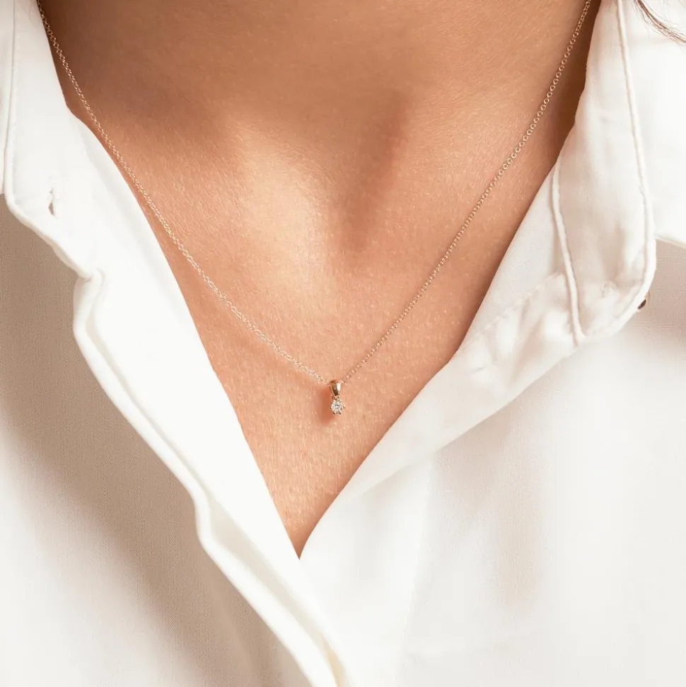 Dieser Anhänger für Ketten begeistert mit seinem ansprechenden Funkeln! Er ist aus 585er Roségold gefertigt und wird von einem krappengefassten Diamant (ca. 0,05 ct., Farbe: Top Wesselton, Reinheit: small inclusions) im Brillantschliff geziert. Neben höchsten Qualitätsstandards, achten wir auch auf ethische Aspekte. Daher stammen unsere Diamanten ausschließlich aus konfliktfreien Quellen.