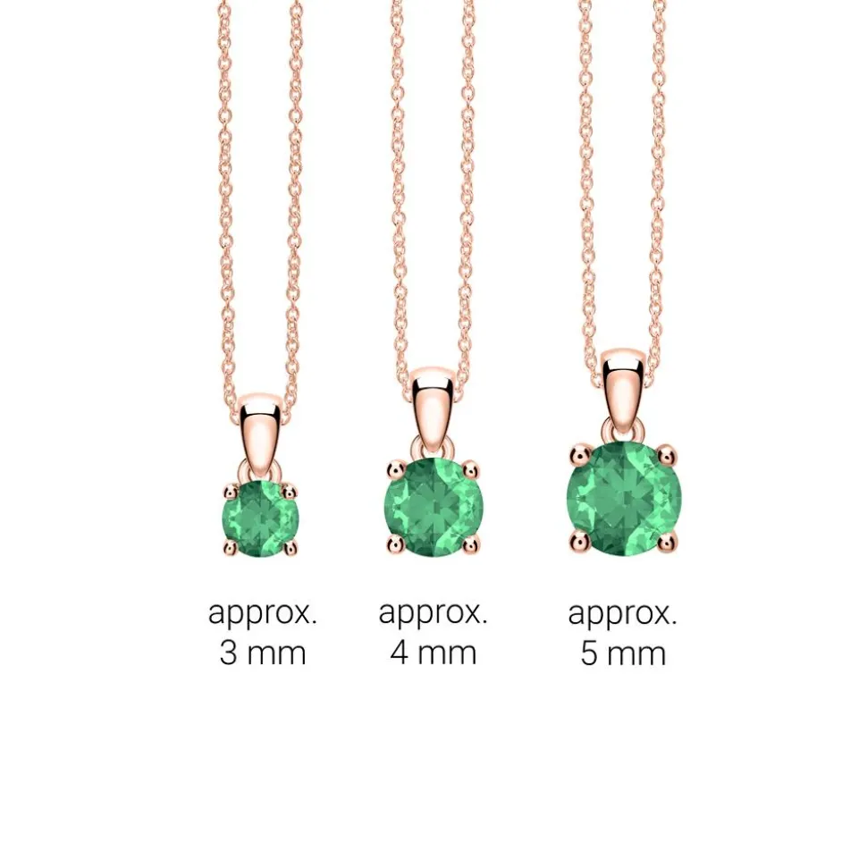 Mit einem wirkungsvollen Farbenspiel begeistert dieser Kettenanhänger aus 585er Roségold und einem krappengefassten Smaragd. Dieser besitzt einen Stufenschliff und kann dank des Selektionsfeldes in seiner Größe (seinem Gewicht) individuell ausgewählt werden.