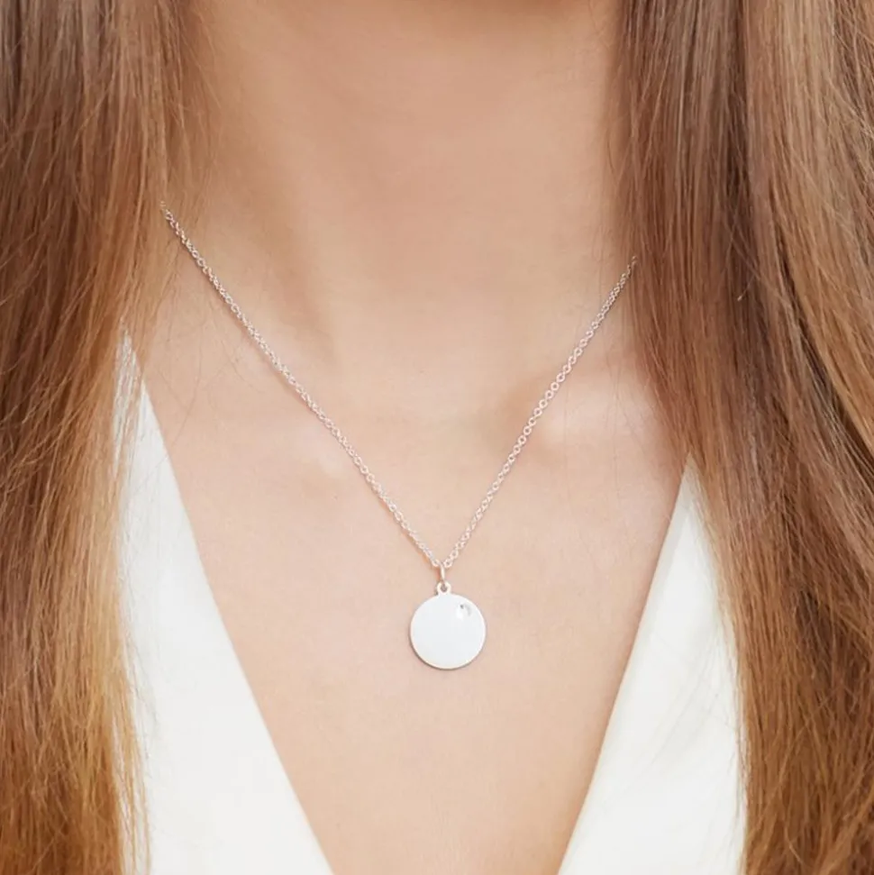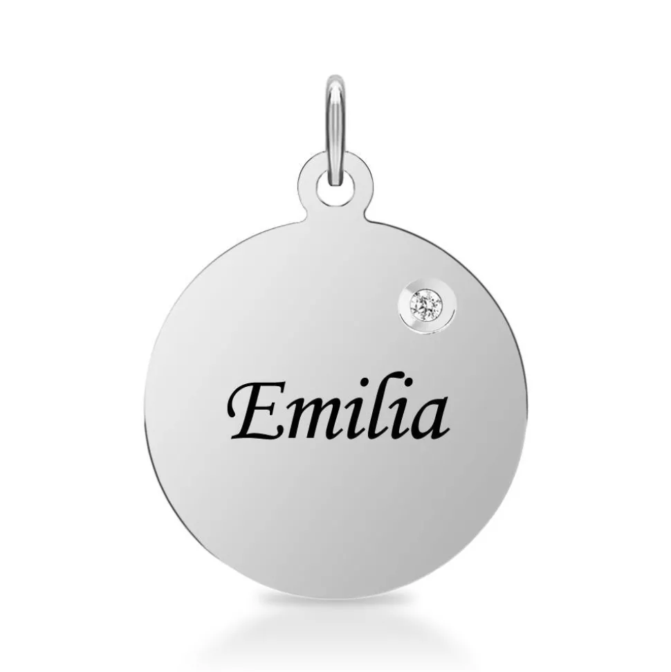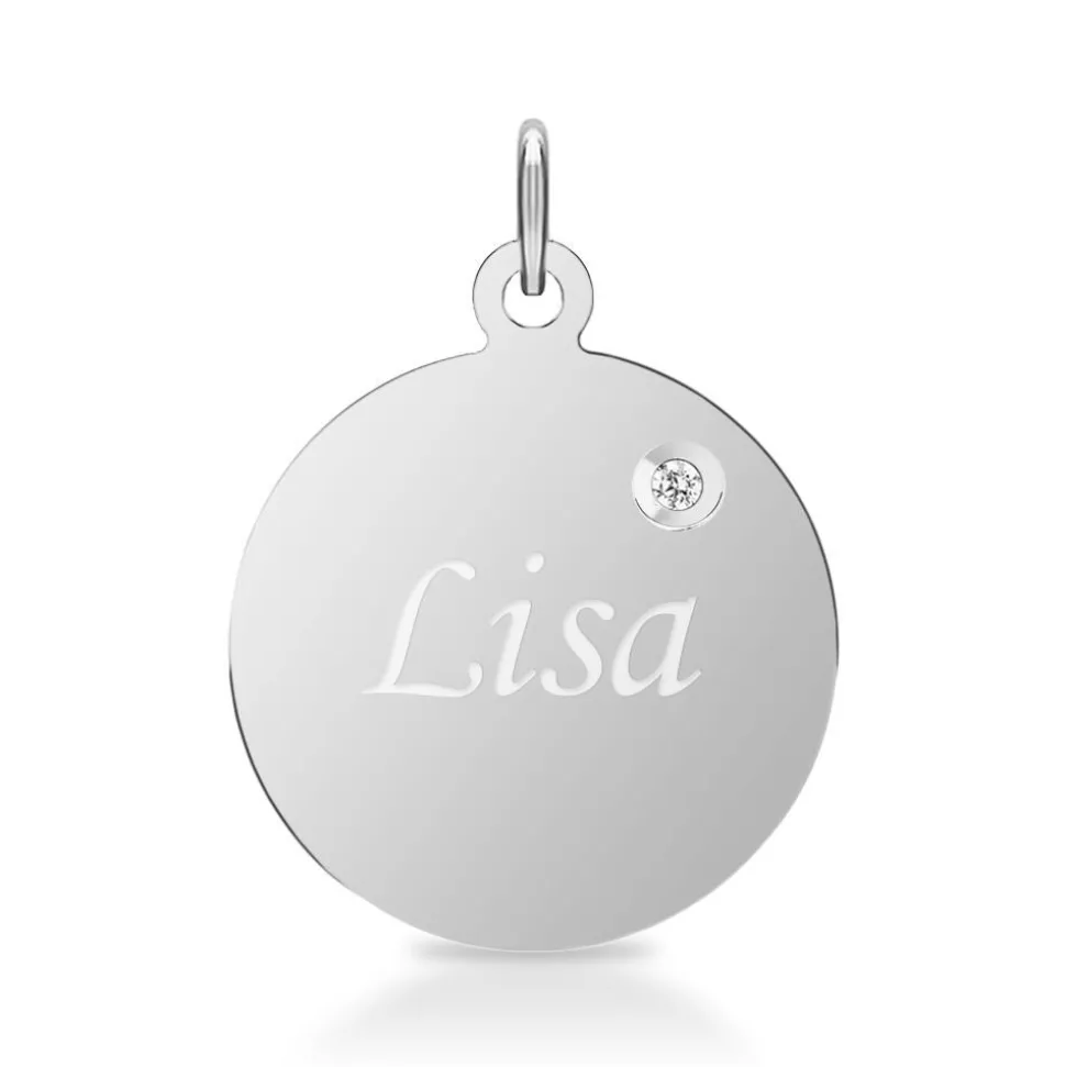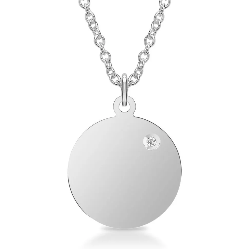 In den runden Anhänger aus poliertem Sterlingsilber ist ein Diamant im Brillantschliff (ca. 0,01 ct.; Farbe: G; Reinheit: SI) eingefasst. Wir legen bei unserem Diamantschmuck nicht nur Wert auf eine exzellente Qualität, die bei jedem einzelnen Schmuckstück von Hand geprüft wird, sondern auch auf ethische Aspekte. Deshalb stammen unsere Diamanten ausschließlich aus konfliktfreien Quellen. Gerne versehen unsere erfahrenen Graveure den Anhänger mit Ihrem persönlichen Wunschtext. Von einem Datum, einem Namen, bis hin zu einer individuellen Widmung ist alles möglich.