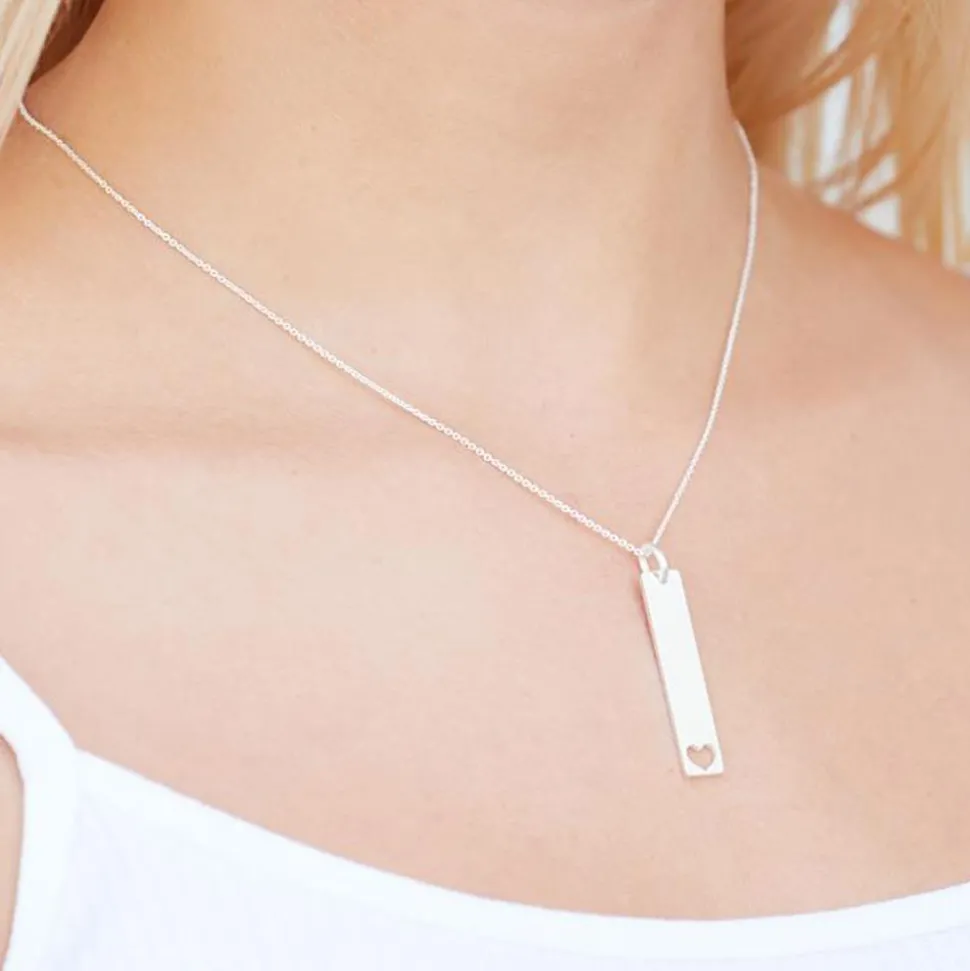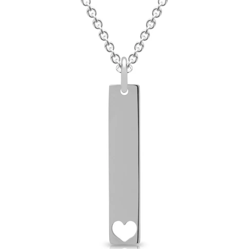 Bei diesem sonst sehr puristisch gehaltenen Anhänger fällt sofort der schöne Cut-Out in Herzform ins Auge. Der längliche Anhänger ist aus hochglanzpoliertem 925er Silber gearbeitet und wird mit der praktischen Öse einfach an einer Kette getragen. Mit einer hochwertigen Lasergravur (siehe Bild 2) wird der Anhänger zu einem sehr persönlichen Schmuckstück.