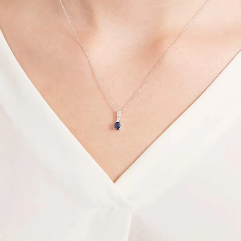Der ovale Saphir (ca. 0,44 ct.; 4 x 5 mm) ist nicht der einzige Eyecatcher dieses 14-karätigen Weißgold-Anhängers, denn er wird zudem von 7 funkelnden Brillanten (ca. 0,02 ct.; Farbe: G; Reinheit: SI) in Pavéfassung geziert. Der Kontrast zwischen dem hochglanzpolierten Weißgold, der weißen Diamanten und dem tiefblauen Saphir harmoniert hervorragend mit dem zurückhaltenden Design des Anhängers. Zudem ist er rhodiniert und somit anlaufgeschützt. Wir legen bei unserem Diamantschmuck nicht nur Wert auf eine exzellente Qualität, sondern auch auf ethische Aspekte. Deshalb stammen die Diamanten ausschließlich aus konfliktfreien Quellen. Wenn Sie sich in das Blau des Saphirs verliebt haben, finden Sie bei uns weitere Weißgold-Kreationen mit dem gleichen Steinbesatz.