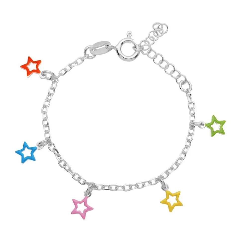 Farbenfroher Blickfang – Sterlingsilber-Kinderarmband mit bunten Sternanhängern
