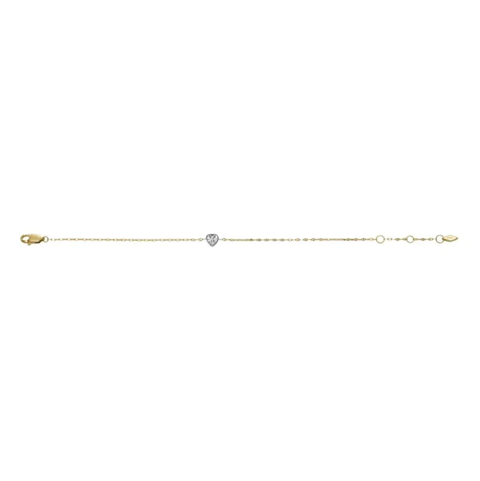 Wunderschön – das ist diese Armkette für Damen. Sie ist aus goldfarbenem IP-beschichtetem Edelstahl gefertigt und besitzt ein eingearbeitetes Schmuckelement. Dieses ist nicht vergoldet und trägt einen Schmuckkristall in Herzform. Durch die drei Ösen ist das Armband in der Länge verstellbar. Verschlossen wird es mit einem Karabiner.