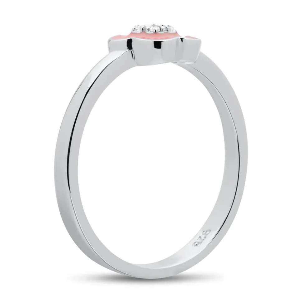 Dieser Ring versprüht eine bezaubernde Leichtigkeit, die perfekt zu einem frühlingshaften Look passt. Er kann hervorragend zu einem legeren Kleid mit Jeansjacke und Sneakern getragen werden, aber auch ein klassisches Outfit mit einer mädchenhaften Note auflockern. Der Damenring besteht aus 925er Sterlingsilber und die Blütenblätter sind mit rosafarbener Emaille überzogen. Funkelnder Eyecatcher sind die weißen Zirkoniasteine, die die Blütenmitte zieren. Zudem sorgt die schmale Ringschiene für ein angenehmes Tragegefühl. Auch eine Gravur der Innenseite ist gegen Aufpreis möglich.