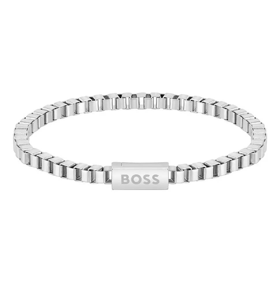 Dieses Herrenarmband in Venezianerkettengliederung rundet jedes Outfit ab. Es besteht aus Edelstahl und wird mit einem praktischen Magnetverschluss sicher am Handgelenk verschlossen. Der Markenname ist auf der Vorderseite des Magnetverschlusses zu lesen.