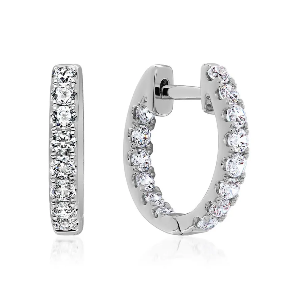 Traumhaft schön – das sind diese Creolen für Damen, die wahlweise in 585er oder 750er Weißgold oder 950er Platin geliefert werden können. Dafür bitte das entsprechende Wunschmaterial im Drop-down-Feld auswählen. Jeder Ohrring wird auf der äußeren Vorderseite und der hinteren Innenseite von brillantgeschliffenen Diamanten (beide zusammen: 28; ca. 0,47 ct.), die im Labor gezüchtet wurden, geziert. Die Farbe dieser Lab Grown Diamanten fällt in die Kategorien „River“ bis „Top Wesselton“ und die Reinheit ist mit „very,very small inclusions“ bis „very small inclusions“ klassifiziert. Mittels hochtechnologischem Verfahren produziert, stehen diese Diamanten natürlich vorkommenden Diamanten in ihren wertbestimmenden Eigenschaften, wie der Qualität, der Härte und dem Funkeln, in nichts nach und sind zudem noch umweltfreundlicher. Der Ohrschmuck verfügt über ein Brilladia-Zertifikat.