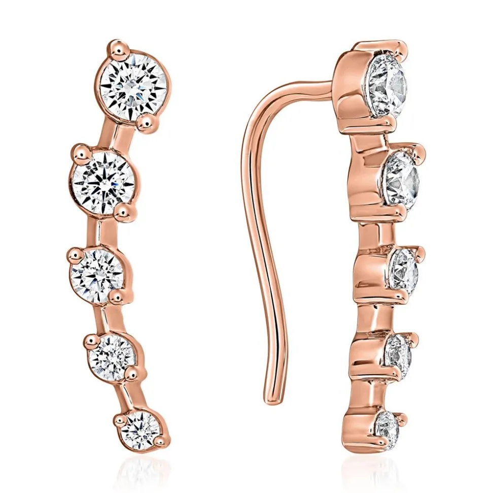 Traumhaft feminin – das sind diese Ohrhänger. Es kann gewählt werden, ob sie aus 585er oder 750er Roségold bestehen sollen. Dafür bitte die entsprechende Legierung im Drop-down-Feld auswählen. Die geschwungenen Ohrhänger werden von insgesamt 10 brillantgeschliffenen Diamanten (ca. 0,57 ct.; Farbe: DEF; Reinheit: VVS-VS), die im Labor gezüchtet wurden, geziert. Die größeren Diamanten befinden sich näher am Ohr und nach unten hin verjüngen sie sich. Genauso wie natürliche Diamanten verfügen Lab Growns über eine überragende Härte, eine hohe Qualität und ein zauberhaftes Funkeln (Feuer). Der Vorteil solcher Diamanten liegt jedoch in ihrer umweltfreundlicheren Produktion, die keinen Diamantabbau erfordert. Der Ohrschmuck verfügt über ein Brilladia-Zertifikat.