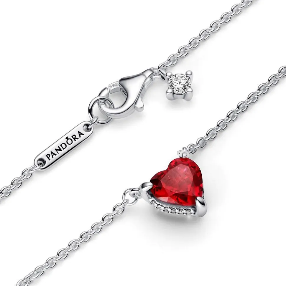Das wunderschöne Design dieses Colliers begeistert. Es besteht aus 925er Silber und trägt einen facettierten, roten Schmuckkristall in Herzform, der von drei Krappen gehalten wird. Die Seiten der Fassung sind mit weißen Zirkoniasteinen besetzt. Ein weiterer weißer Zirkoniastein hängt neben dem Karabinerverschluss. Die Kette kann an zwei Stellen verschlossen werden.