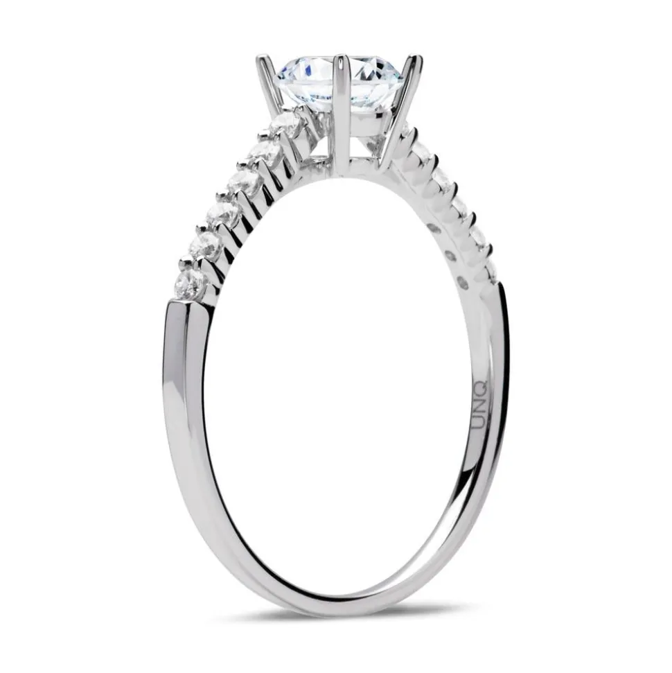 Dieser Ring verleiht jedem Look noch mehr Glamour und Eleganz. Als Eyecatcher dient der Hauptbrillant (ca. 0,60 ct.). Ein Teil der filigranen Ringschiene aus 585er Weißgold wird von 12 reinweißen Diamanten (ca. 0,16 ct.; Farbe: Top Wesselton, Reinheit: small inclusions) im Brillantschliff geziert. Der Ring ist rhodiniert und somit anlaufgeschützt. Der Hauptdiamant ist von dem renommierten Gemological Institute of America (GIA) zertifiziert. Dieses Zertifikat gibt Auskunft über die Herkunft, Echtheit und alle weiteren wertbestimmenden Merkmale. Neben höchsten Qualitätsstandards, die wir bei jedem einzelnen Schmuckstück von Hand prüfen, achten wir auch auf ethische Aspekte. Deshalb stammen unsere Diamanten ausschließlich aus konfliktfreien Quellen.