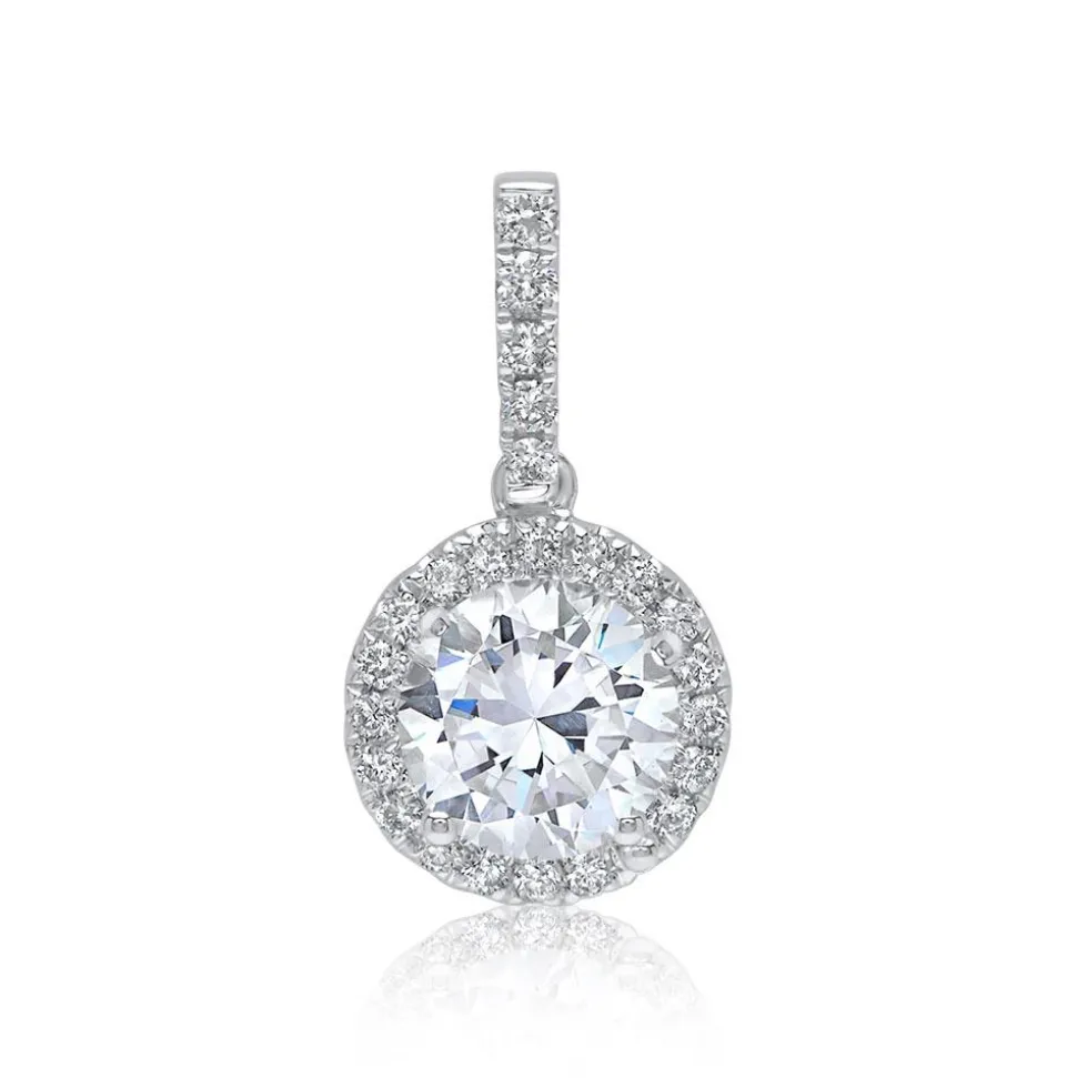 Dem Glanz dieses Anhängers aus 750er Weißgold kann man sich einfach nicht entziehen! Der runde Anhänger wird von 25 leuchtenden Diamanten mit ca. 0,12 ct. geziert. Besonderes Highlight des Anhängers ist der Diamant (ca. 0,50 ct.) in der Mitte. Die Farbe der Steine ist klassifiziert als Feines Weiß (Top Wesselton) und die Reinheit der Steine fällt in die Kategorie SI (small inclusions). Einen sicheren Halt bekommt dieser mittige Edelstein durch eine Krappenfassung mit vier Krappen. Mit dem Diamantanhänger erwirbt man ein zeitlos schönes Accessoire, das sich keinen Modetrends unterwirft. Die Qualität unserer Diamanten entspricht höchsten internationalen Standards. Jeder Diamant wird einzeln von Hand geprüft und stammt aus konfliktfreien Quellen. Der Hauptdiamant ist von dem renommierten Gemological Institute of America (GIA) zertifiziert. Dieses Zertifikat gibt Auskunft über die Herkunft, Echtheit und alle weiteren wertbestimmenden Merkmale.