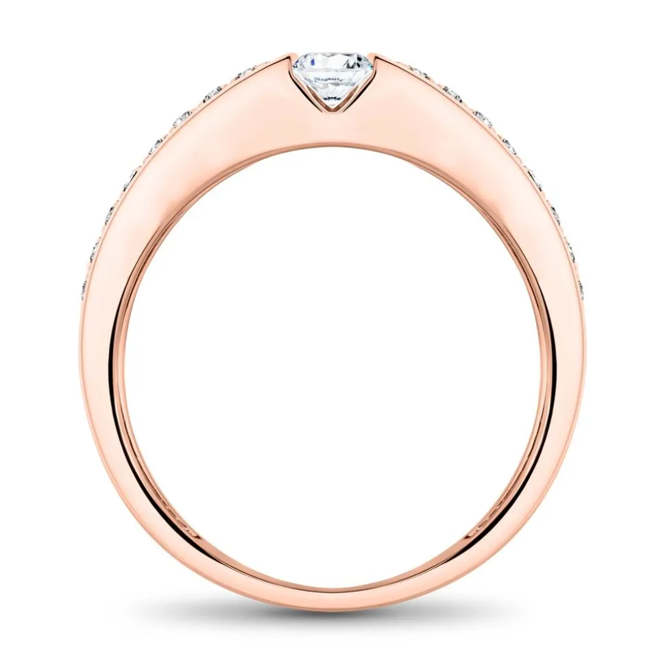 Dieser Verlobungsring begeistert mit seinem modernen Glanz und dem zeitlosen Design! Er besteht aus 14-karätigem Roségold und besitzt als Centerstone einen Brillanten (ca. 0,15 ct.; Farbe:Top Wesselton; Reinheit: small inclusions). Gerahmt wird dieser von 16 Brillanten (ca. 0,19 ct; TW/SI), die die Hälfte der Ringschiene zieren. Neben höchsten Qualitätsstandards, achten wir auch auf ethische Aspekte. Für uns ist es selbstverständlich, dass wir unsere Diamanten von Hand prüfen und ausschließlich aus konfliktfreien Quellen beziehen.