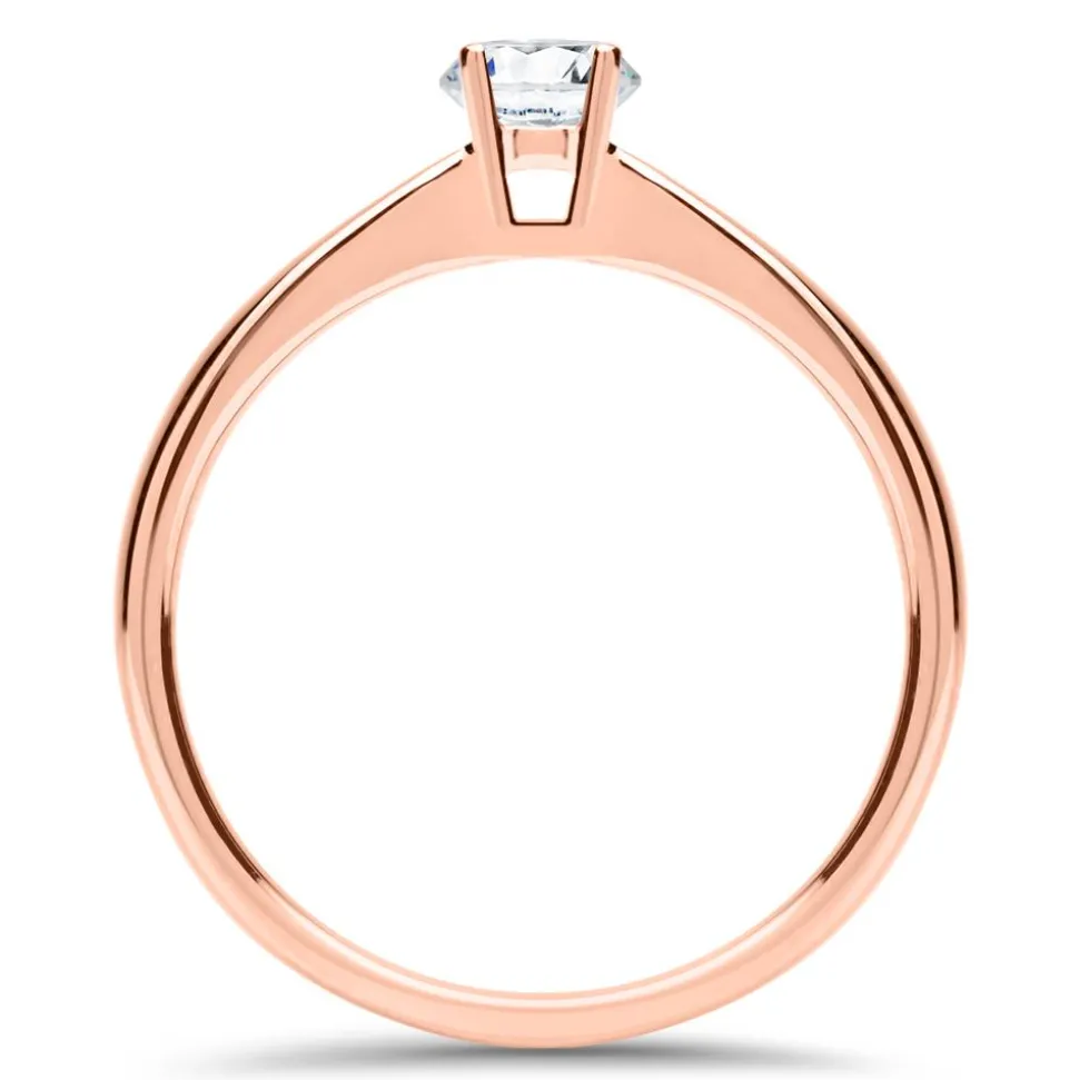 Ein stylisher Glanz und ein atemberaubendes Funkeln – das macht diesen Verlobungsring aus! Er ist aus 585er Roségold gefertigt und wird von einem synthetischen Diamanten (ca. 0,25 ct.; D-F/VS-VVS) im Brillantschliff geziert. Dieser ist mit einem innovativen Verfahren im Labor hergestellt worden und besteht, wie ein echter Diamant, aus gepresstem Kohlenstoff. Die sogenannten lab-grown Diamanten begeistern durch ihre umweltfreundlichere Herstellungsweise und den ethischen Aspekten der Konfliktfreiheit. Der Ring kann auf der Innenseite mit einem individuellen Wunschtext graviert werden. Zudem gewährleistet die schmale Ringschiene einen angenehmen Tragekomfort.