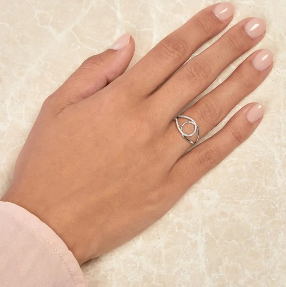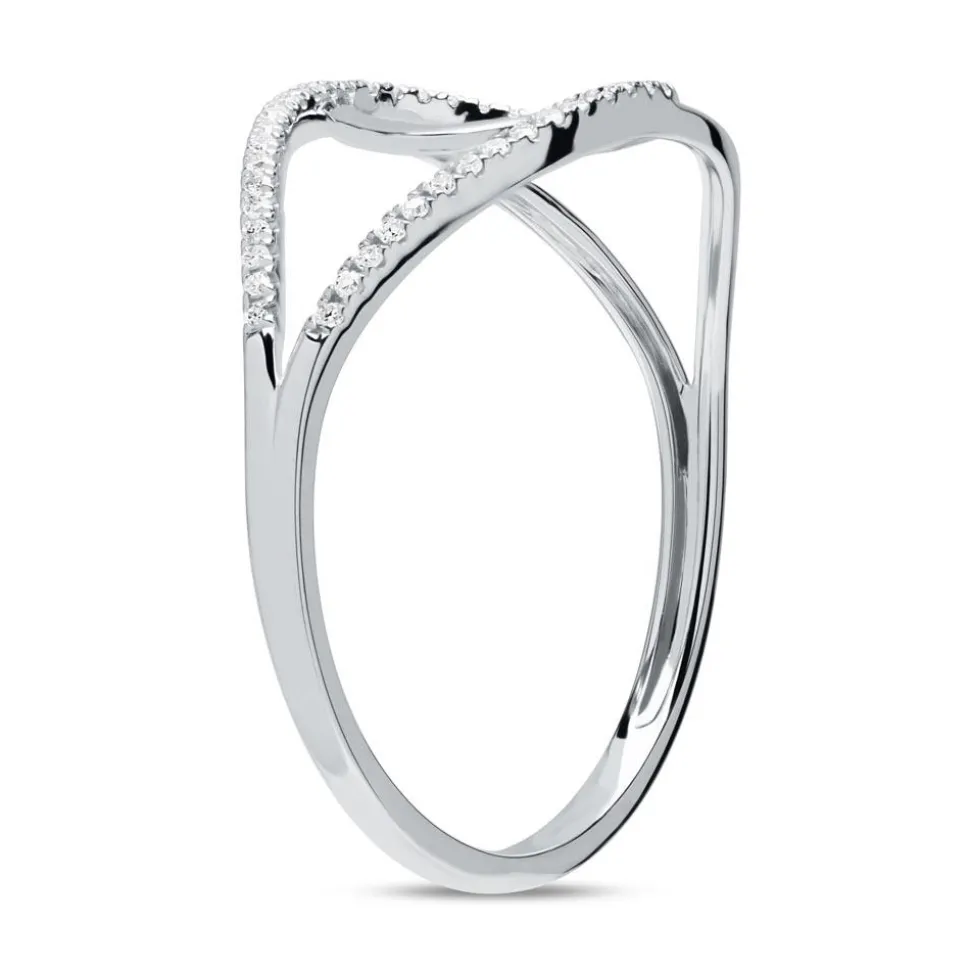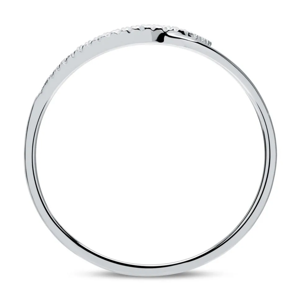 Formvollendet schön – das ist dieser 585er Weißgold-Ring mit 43 weiß-funkelnden Diamanten (ca. 0,08 ct. Farbe Weiß (Wesselton) Reinheit SI (small inclusions)) im Brillantschliff. Das organische Design der ineinander geschlungenen Ringschiene wird durch das Strahlen der Diamanten gekrönt – einfach unendlich schön! Die Ringschiene verjüngt sich nach hinten, wodurch ein hoher Tragekomfort gewährleistet werden kann. Für uns ist es selbstverständlich, dass die verarbeiteten Diamanten aus konfliktfreien Quellen stammen. Dank der hochwertigen Rhodinierung ist der Ring anlaufgeschützt.