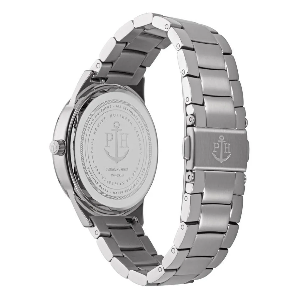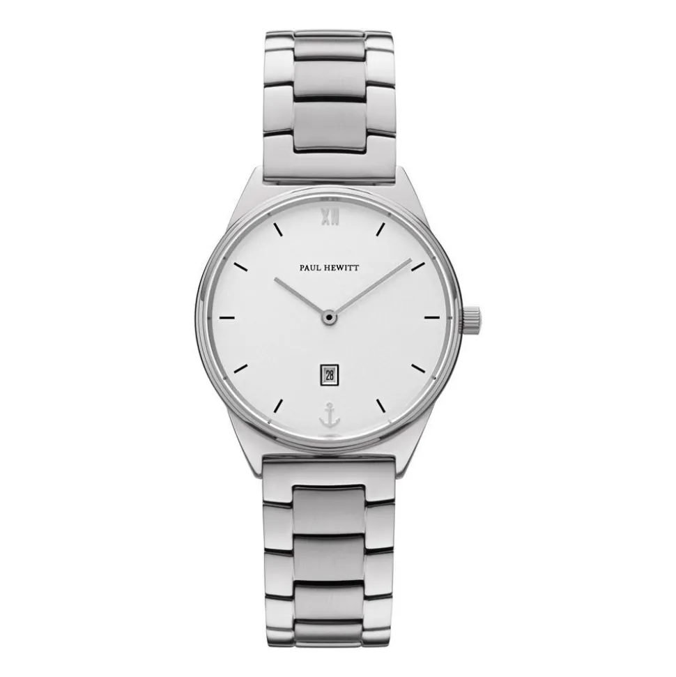 Lässig und zeitlos – das ist diese Damenuhr aus Edelstahl. Das weiße Zifferblatt ist minimalistisch gehalten und besitzt eine Datumsanzeige. Das Gliederband wird mit einer praktischen Faltschließe geschlossen und das Uhrengehäuse ist bis zu einem Druck von 5 bar wasserdicht.