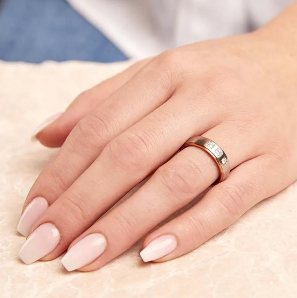 Moderner Ring aus Edelstahl mit roségoldenen Akzenten