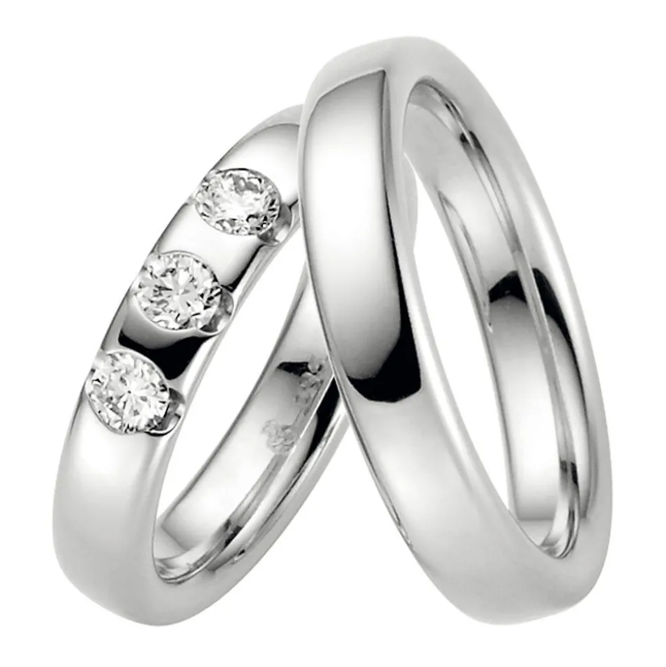 Stilvolles Set – Trauringe aus Weißgold mit 3 Brillanten von Rauschmayer