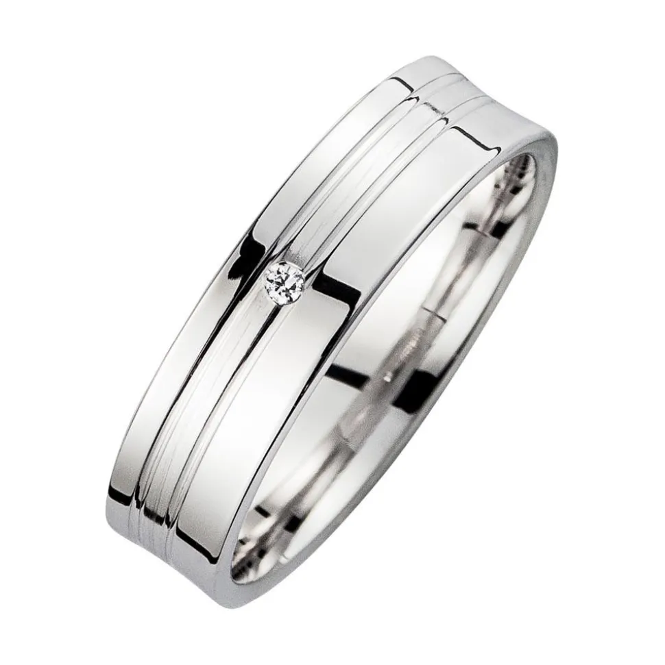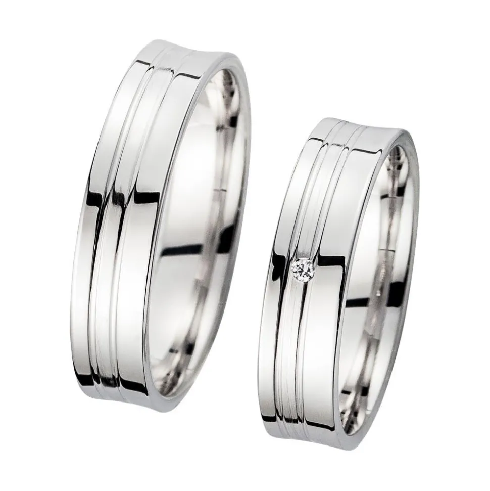 Gravierbare Trauringe in Weißgold mit Brillant