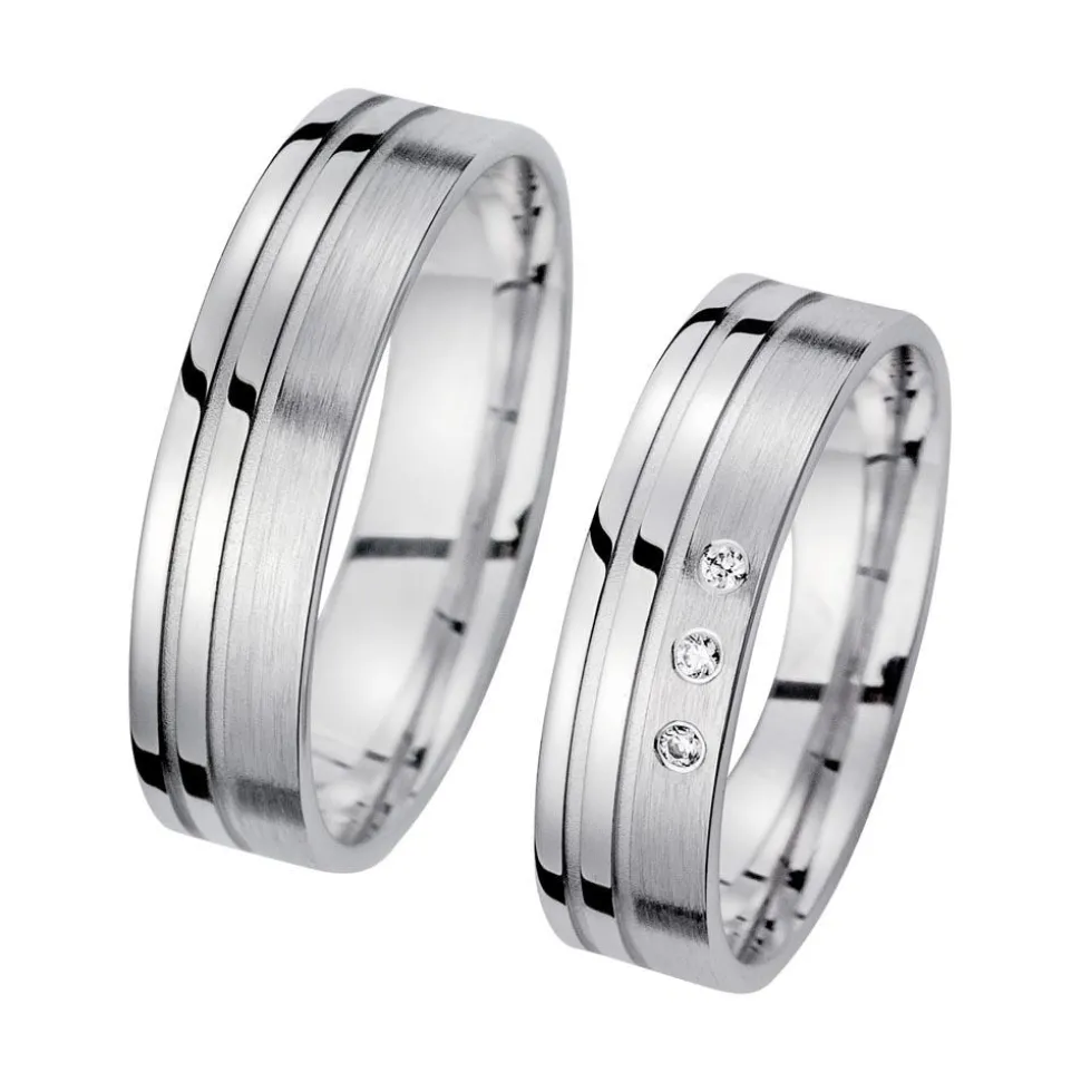 Gravierbare Trauringe in Weißgold mit Brillanten