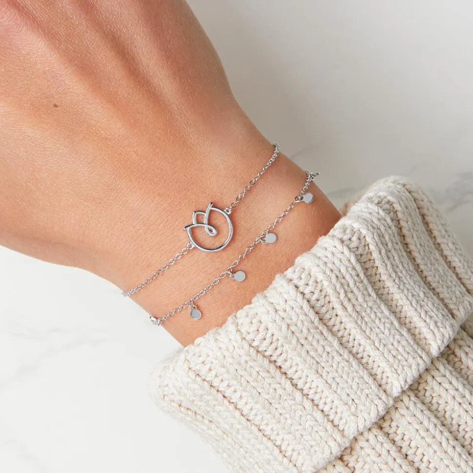 Bezaubernd feminin – das ist diese Armkette. Sie besteht aus rhodiniertem Sterlingsilber und zwischen die filigranen Ankerkettenglieder ist ein Schmuckelement in Blütenform eingearbeitet, welches auch das Markenlogo von lanii darstellt. Das Damenarmband mit Verlängerungskette besitzt einen Federring als Verschluss.