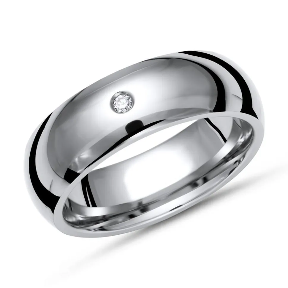 Glänzender Titanring der Marke Unique Titanium in 6 mm Breite mit Diamant 0,02 ct. (Brillantschliff). Der Ring ist bombiert (von Innen abgerundet) und daher angenehm zu tragen.