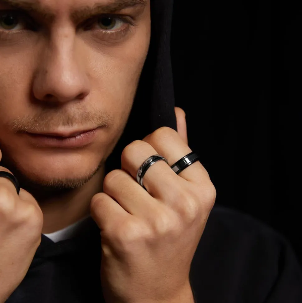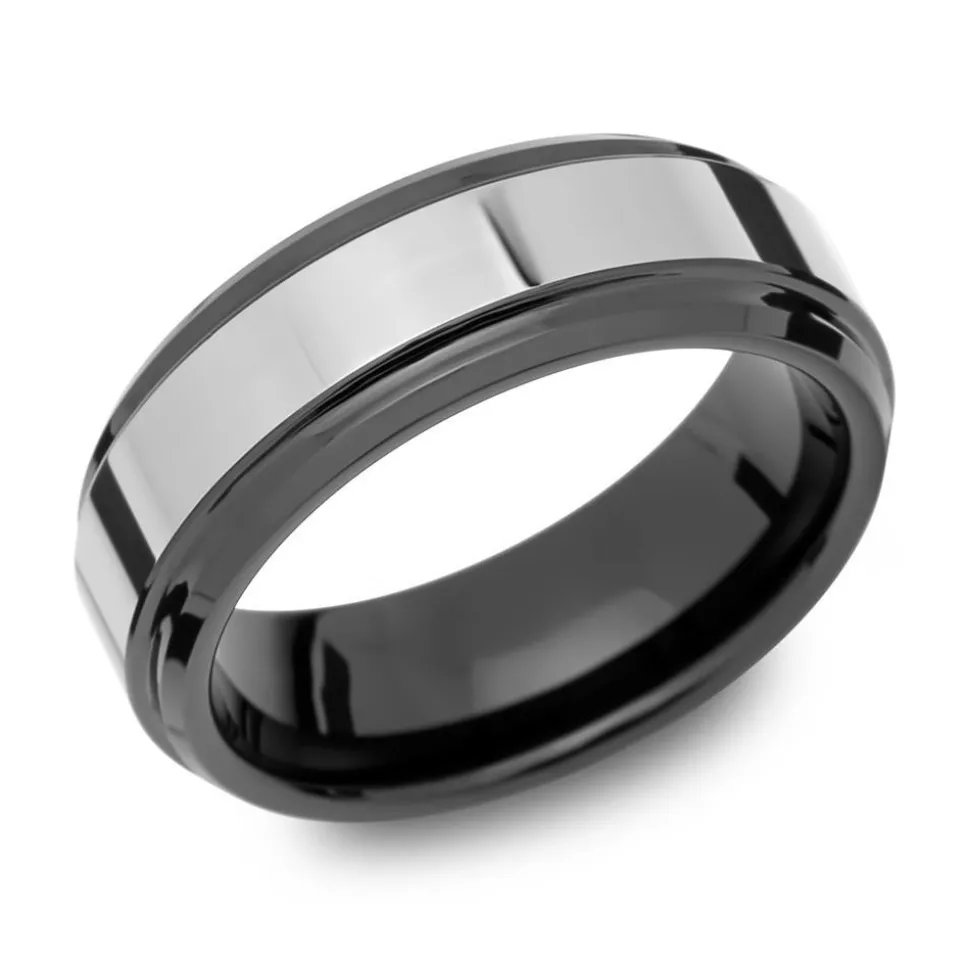 Exklusiver Tungstenring, 7mm breit, mit glänzender Ionenbeschichtung. Der Ring ist bombiert (von Innen abgerundet) und daher angenehm zu tragen.
