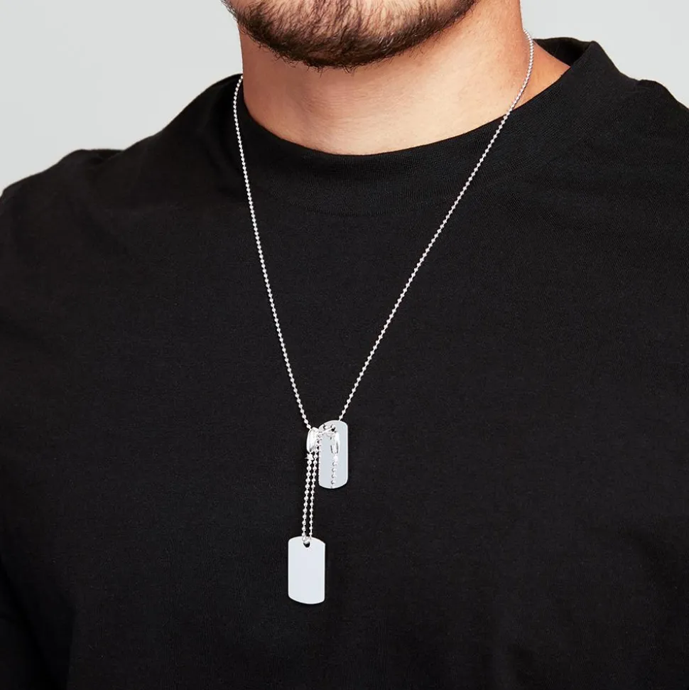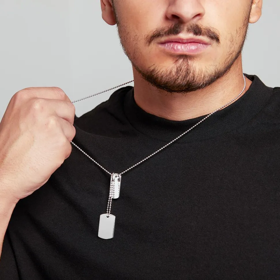 Die Kugelkette und der Anhänger mit lässig urbanen Style sind absolut angesagt. Zudem kann der Dog-Tag-Anhänger individuell von Ihnen gestaltet werden. Wie das geht? Mit unserem Produkt-Designer! Hiermit haben Sie die Möglichkeit den Anhänger mit einer gut lesbaren Laser- oder einer dezenten Diamantgravur versehen zu lassen. Sie können dem Dog-Tag mit einem selbstgewählten Spruch, einem von uns zur Verfügung gestelltem Motiv oder einem eigenen Bild eine persönliche Note verleihen – Seien Sie kreativ.