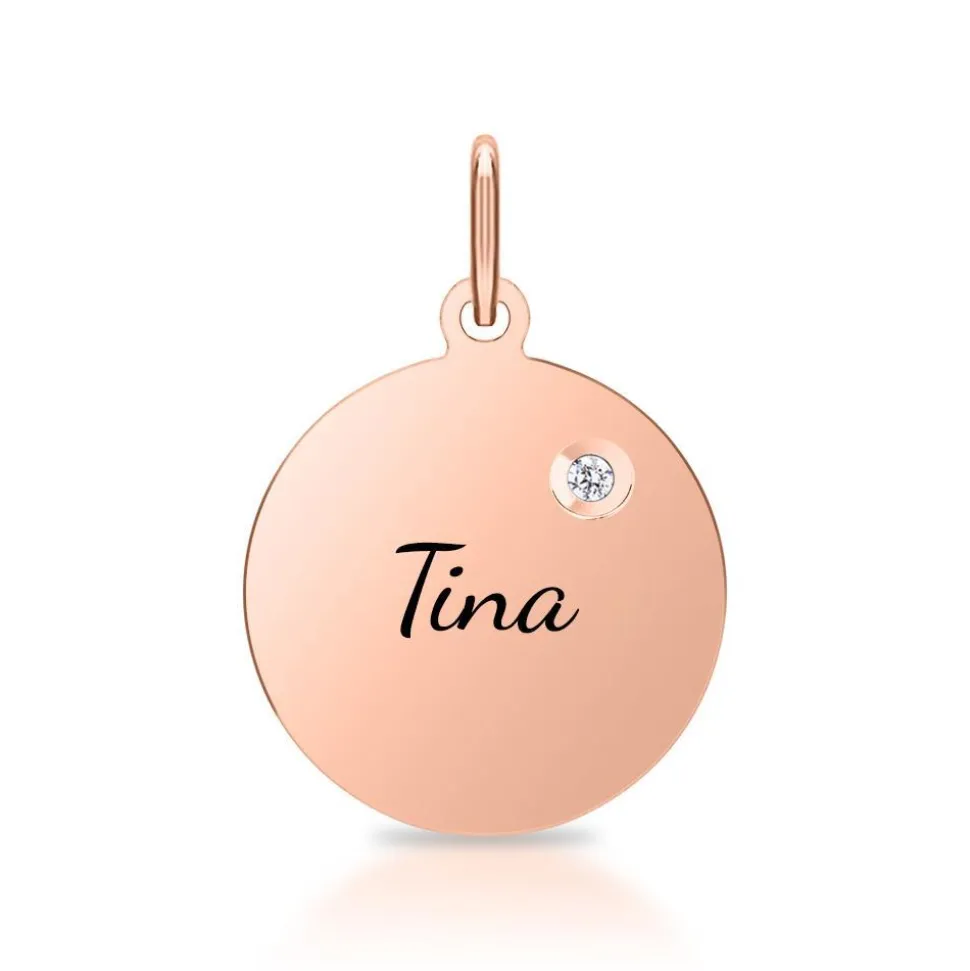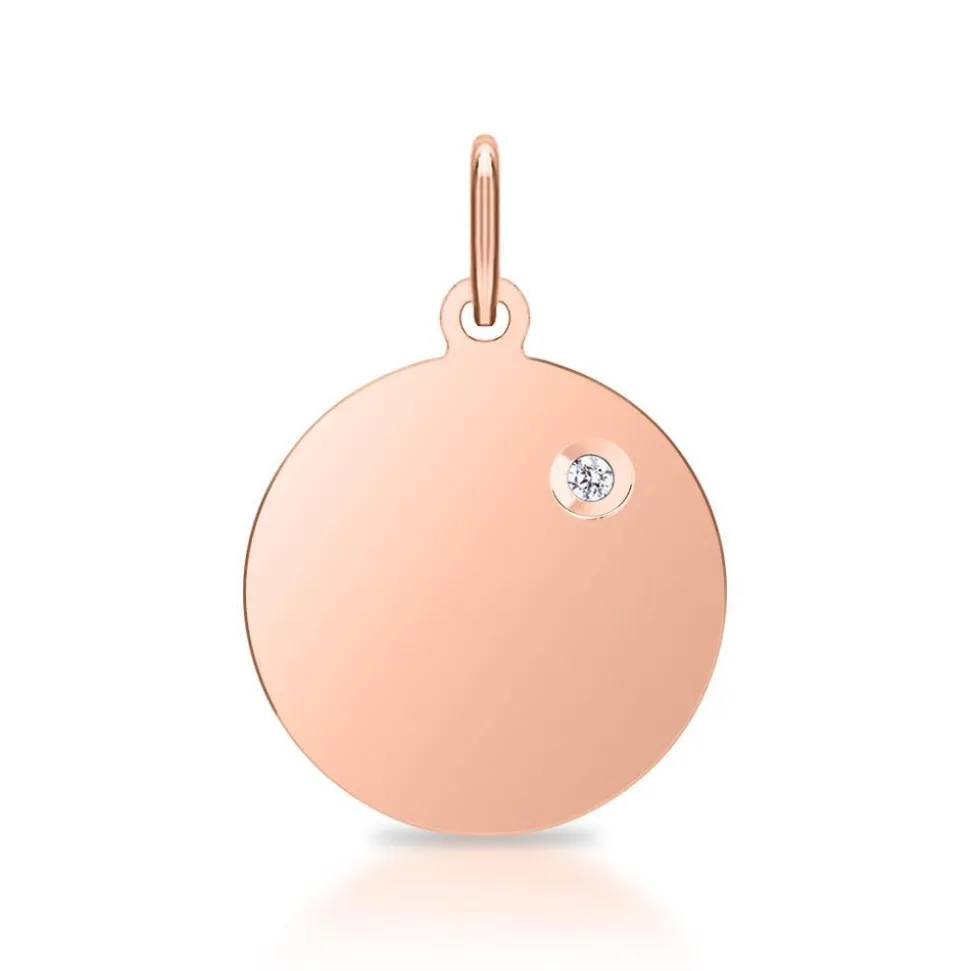 Ein klassisches Design ein moderner Glanz und ein funkelnder Eyecatcher – das macht diesen Anhänger aus rosévergoldetem Sterlingsilber aus. Er besitzt eine runde Form und kann auf der Vorder- und Rückseite mit einer individuellen Gravur versehen werden. Highlight ist der funkelnde Diamant (ca. 0,01 ct.). Die Farbe des Steins ist klassifiziert als Feines Weiß (Top Wesselton) und die Reinheit fällt in die Kategorie SI (small inclusions). Neben höchsten Qualitätsstandards, die wir bei jedem einzelnen Ring von Hand prüfen, achten wir auch auf ethische Aspekte. Daher stammen unsere Diamanten ausschließlich aus konfliktfreien Quellen.