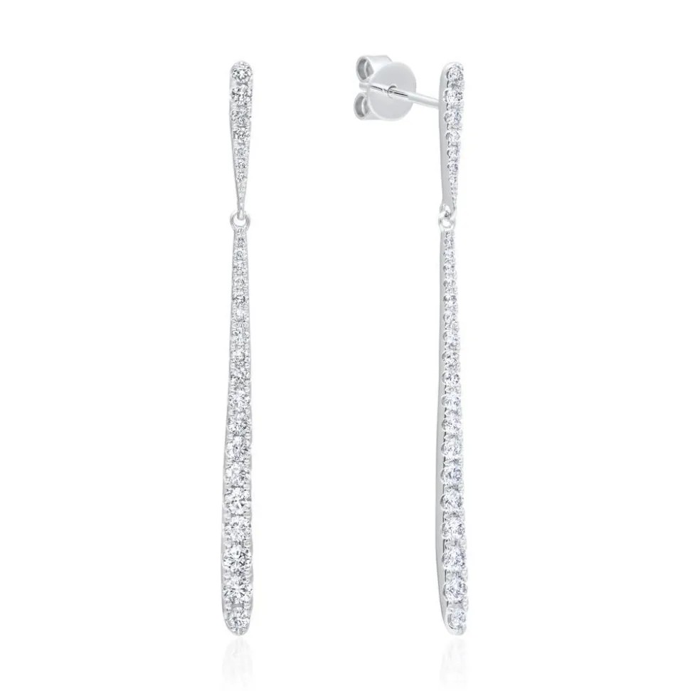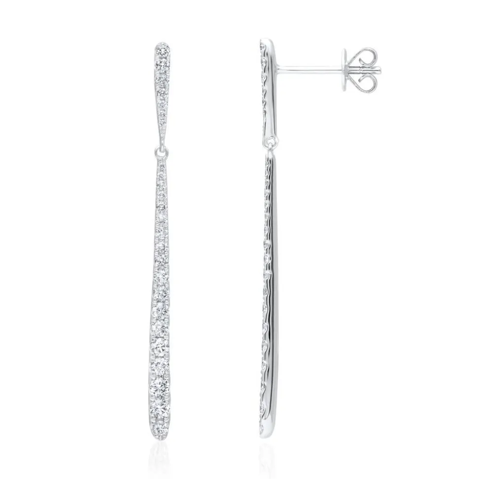 Vollkommene Eleganz – das strahlen diese schwingenden Ohrstecker im Tropfendesign aus. Sie sind aus 18-karätigem Weißgold gefertigt und mit insgesamt 50 brillantgeschliffenen Diamanten besetzt. Diese verfügen über ca. 0,73 ct. und die Farbe „Top Wesselton“. Ihre Reinheit gehört zur Kategorie „small inclusions“. Da wir neben einer hohen Qualität auch viel Wert auf ethische Aspekte legen, stammen unsere Diamanten zudem ausschließlich aus konfliktfreien Quellen.
