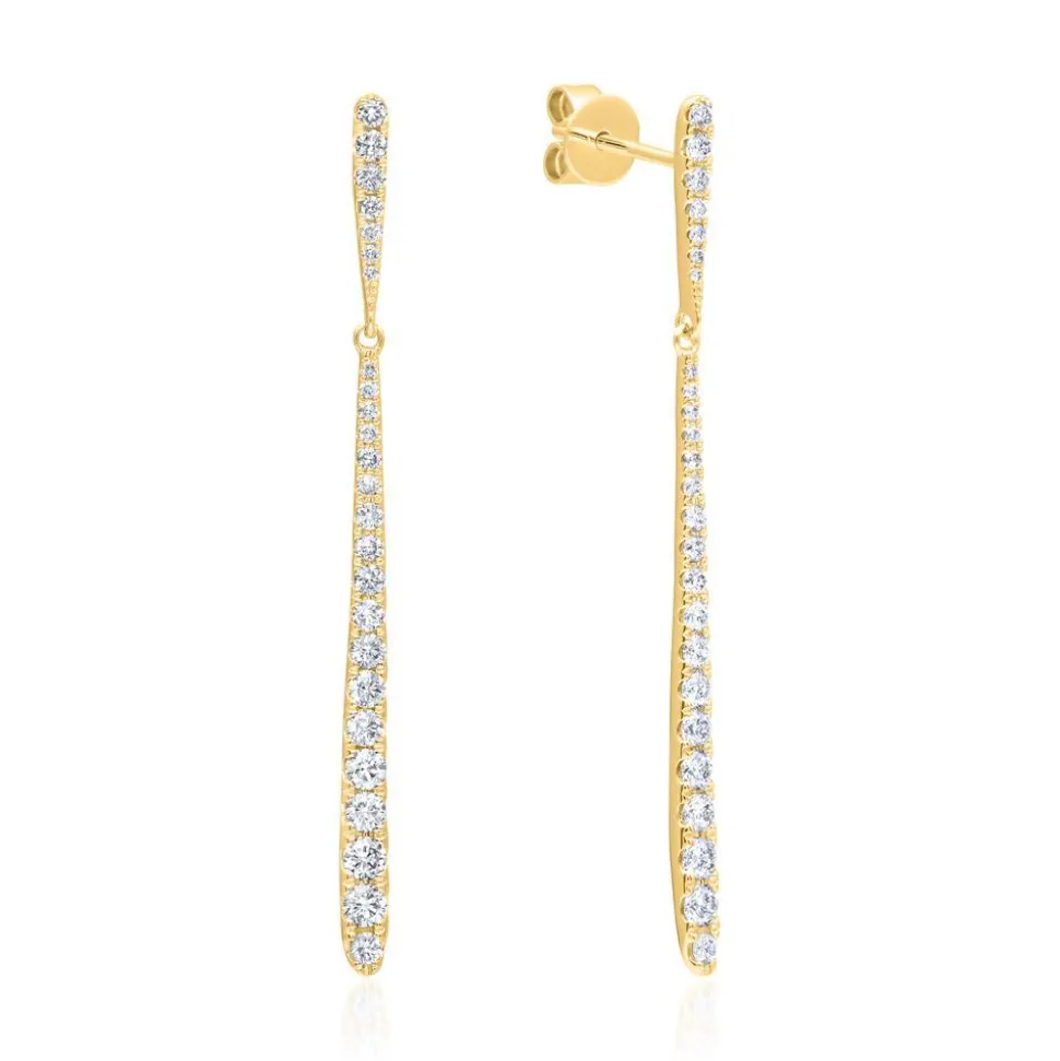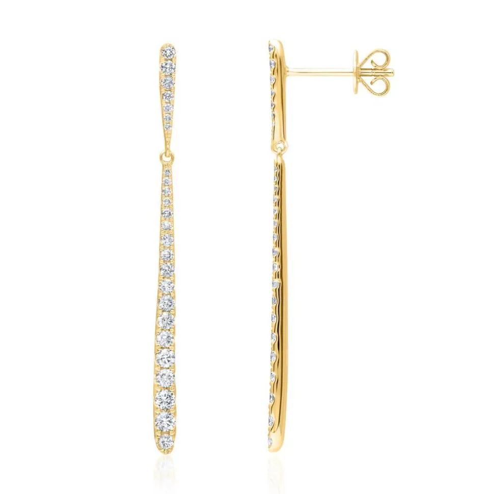 Mit einem edlen Design begeistern diese hängenden Damen-Ohrstecker aus 18-karätigem Gold. Sie bestehen aus jeweils einem länglichen Ohrstecker, an dem ein eleganter Tropfenanhänger schwingt. Sowohl die Ohrstecker als auch die Anhänger sind mit insgesamt 50 funkelnden Brillanten besetzt (gesamt ca. 0,73 ct.). Ihre Farbe ist als „Top Wesselton“ klassififiziert und ihre Reinheit fällt in die Kategorie „small inclusions“. Neben einer hohen Qualität, zeichnen sich unsere Diamanten zudem durch einen konfliktfreien Ursprung aus.