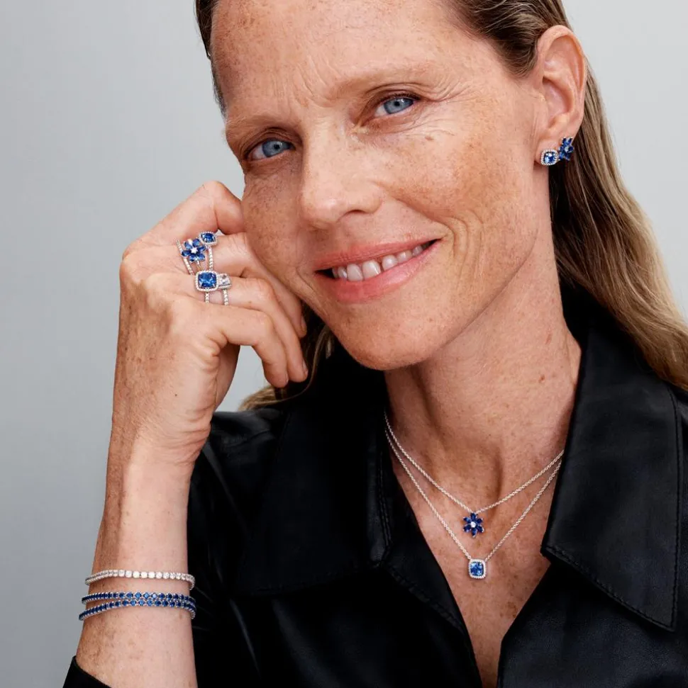 Diese Damenkette aus recyceltem 925er Silber zieht alle Blicke auf sich. Sie überzeugt mit dem eingearbeiteten, quadratischen Schmuckelement im Halo-Design, das am Rand mit funkelnden Zirkoniasteinen besetzt ist. In der Mitte leuchtet dabei ein blauer Schmuckkristall. Ein weiterer kleiner Zirkonia befindet sich am Karabinerhaken, der in Zwischenösen eingehakt werden kann und die Kette längenverstellbar macht. Die Kette gehört zur Timeless-Kollektion.