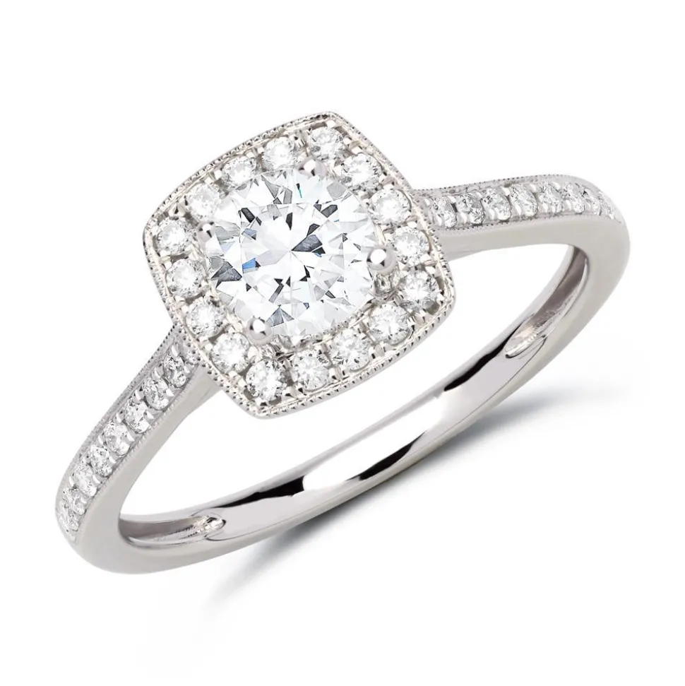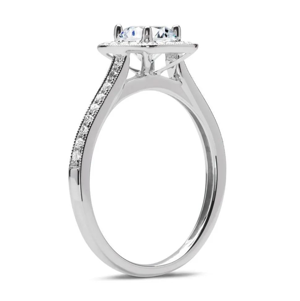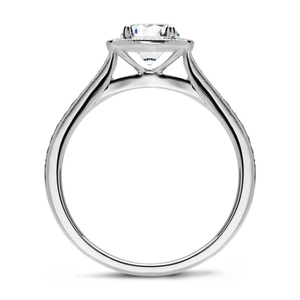 Dieser Ring lässt Herzen höher schlagen – vor Freude strahlende Augen inbegriffen. Der edle Glanz des 950er Platins und die 34 funkelnden Diamanten (ca. 0,24 ct.; Farbe G, Reinheit: SI) in Pavéfassung, die die Hälfte der Ringschiene und den quadratischen Ringkopf zieren, machen aus dem Ring eine kontrastreiche Komposition. In die Krappenfassung können Sie von uns einen Diamanten (ca. 0,50 ct.) im Brillantschliff fassen lassen. Zudem können unsere erfahrenen Graveure die Innenseite des Ringes mit Ihrem persönlichen Wunschtext versehen. Neben höchsten Qualitätsstandards, die wir bei jedem einzelnen Schmuckstück von Hand prüfen, achten wir auch auf ethische Aspekte. Deshalb stammen unsere Diamanten ausschließlich aus konfliktfreien Quellen. Der Hauptdiamant ist von dem renommierten Gemological Institute of America (GIA) zertifiziert. Dieses Zertifikat gibt Auskunft über die Herkunft, Echtheit und alle weiteren wertbestimmenden Merkmale.