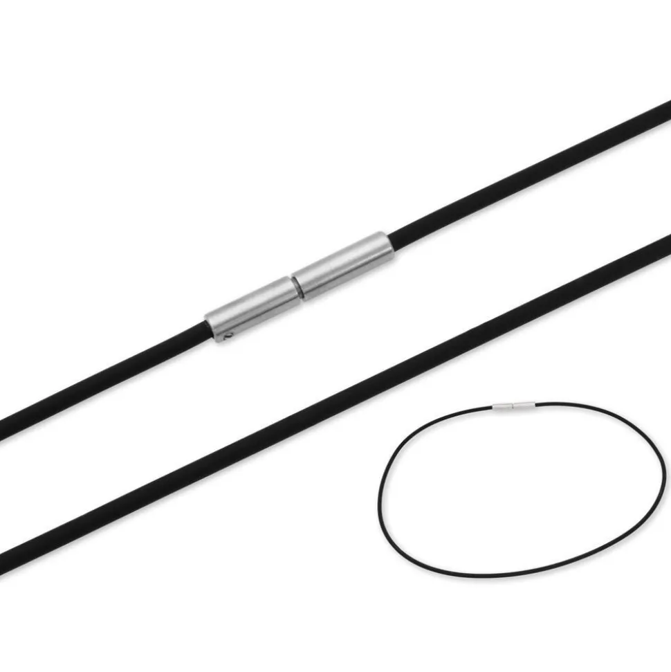 Modernes Kautschukseil mit Edelstahl Bajonettverschluss in 2mm. Das Seil ist in verschiedenen Längen erhältlich.